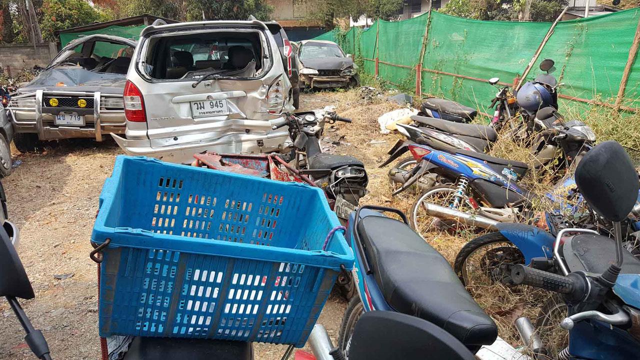 นอกจากนั้น พบรถที่ถูกชนดังนี้ รถยนต์โตโยต้า สีเทา ทะเบียน กค 7292 แพร่ รถยนต์โตโยต้า สีบรอนซ์ ทะเบียน กค 4436 แพร่ รถยนต์เชฟโรเลต สีบรอนซ์ ทะเบียน วม 945 กทม. และรถปิกอัพนิสสัน สีดำ ทะเบียน กน 9059 นครปฐม เสียหาย ทั้งด้านหน้าและท้ายยุบ อีกทั้งมีรถจักรยานยนต์ถูกชนได้รับความเสียหายอีก 5 คัน ตู้โทรศัพท์ขององค์การโทรศัพท์ 1 ตู้