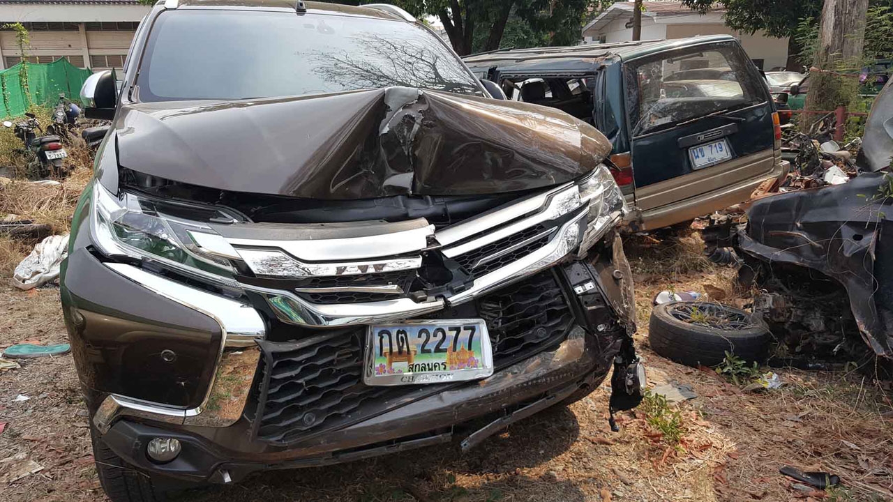 เมื่อวันที่ 15 เม.ย. 59 ร.ต.ท.วัชระ ศรีสุข รอง สว.สส.สภ.เมืองแพร่ ได้รับแจ้งว่าเกิดอุบัติเหตุขึ้นที่บริเวณหน้าตลาดบ้านใหม่ ถ.ยันตรกิจโกศล ต.ในเวียง อ.เมืองแพร่ หลังจากได้รับแจ้งรุดไปสอบสวนที่เกิดเหตุ พบมีรถที่ได้รับความเสียหายหลายคัน โดยคันก่อเหตุเป็นรถยนต์มิตซูบิชิ ปาเจโร่ สีดำ ทะเบียน กต 2277 สกลนคร ได้รับความเสียหายด้านหน้ารถและด้านท้ายรถยุบทั้ง 2 ด้าน ทราบชื่อคนขับ พ.ต.อ.สมรัฐ มุ้งทอง อายุ 63 ปี ชาวบ้าน หมู่ที่ 3 ต.ดงหลวง อ.ท่าหลวง จ.มุกดาหาร อดีต ผกก.สภ.ดงหลวง จ.มุกดาหาร