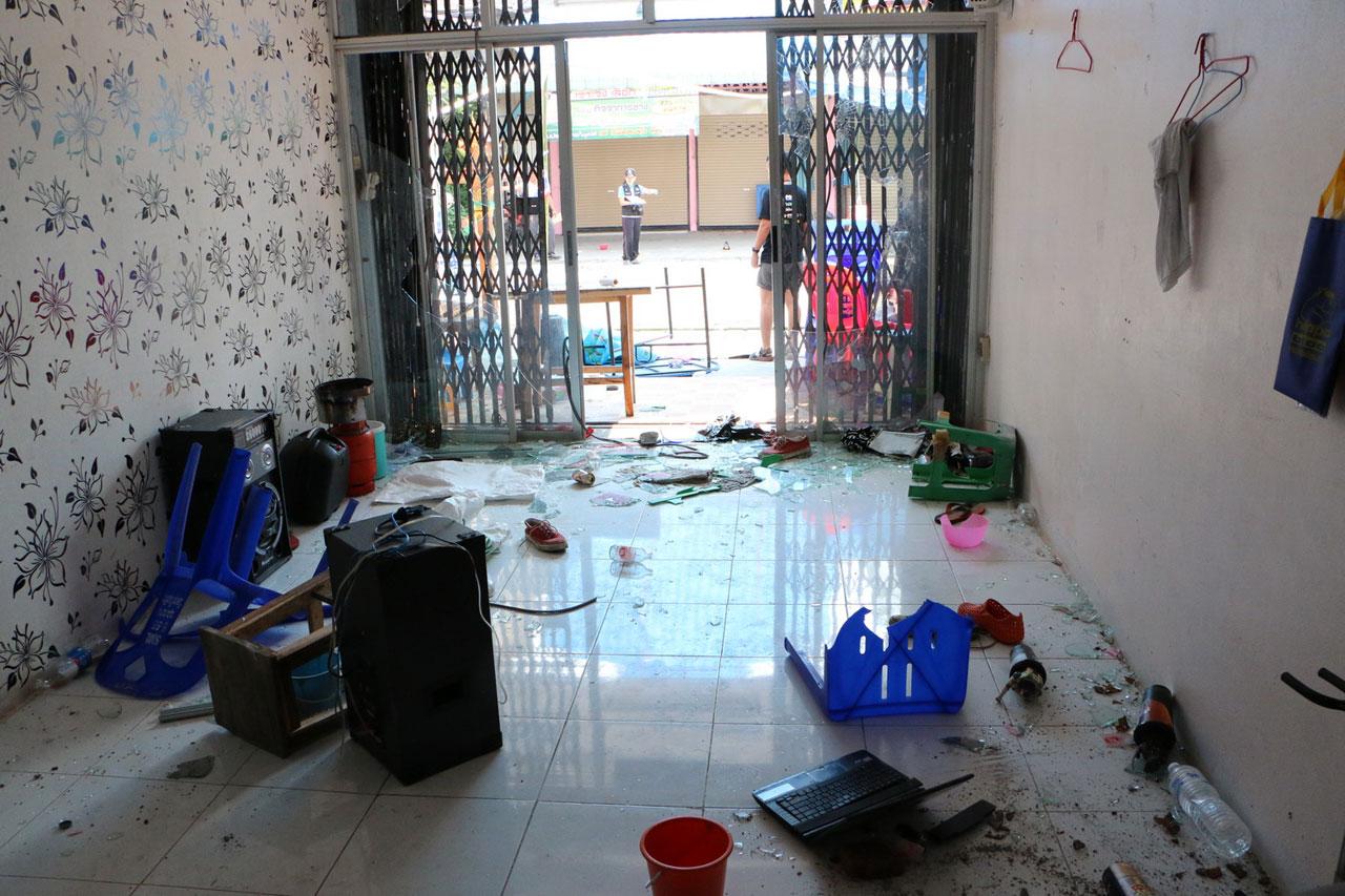 ขณะที่วันนี้ เจ้าหน้าที่ต้องปิดถนนที่เกิดเหตุไม่ให้รถและคนผ่าน ซึ่งจากการลงพื้นที่ยังพบหัวกระสุนขนาดต่างๆ อีกนับสิบหัว ทั้งที่เมื่อวานเก็บไปแล้วนับสิบหัว และทำความสะอาดเศษแก้วไปแล้วก็ตาม ส่วนตามบ้านเรือน 2 ข้างทาง สภาพยังเละเทะ โดยที่บ้านเลขที่ 122 ถ.ราชดำเนิน ต.ในเมือง มี น.ส.สุรีย์มาศ กมลมาลย์ เป็นผู้อาศัย และเป็นอีกจุดที่วัยรุ่นถล่มกันจนกระจกหน้าบ้านแตก สภาพข้าวของในบ้านพังเสียหายระเนระนาด ที่ห้องนอนบนชั้น 2 กระจกหน้าต่างถูกขว้างจนแตก บนที่นอนมีแต่เศษแก้วเศษขวดที่ขว้างขึ้นมา