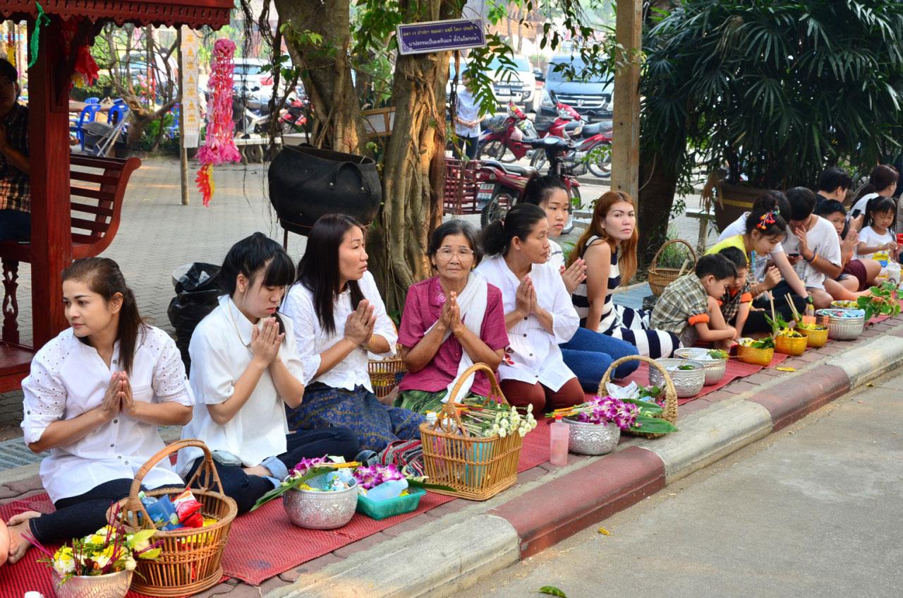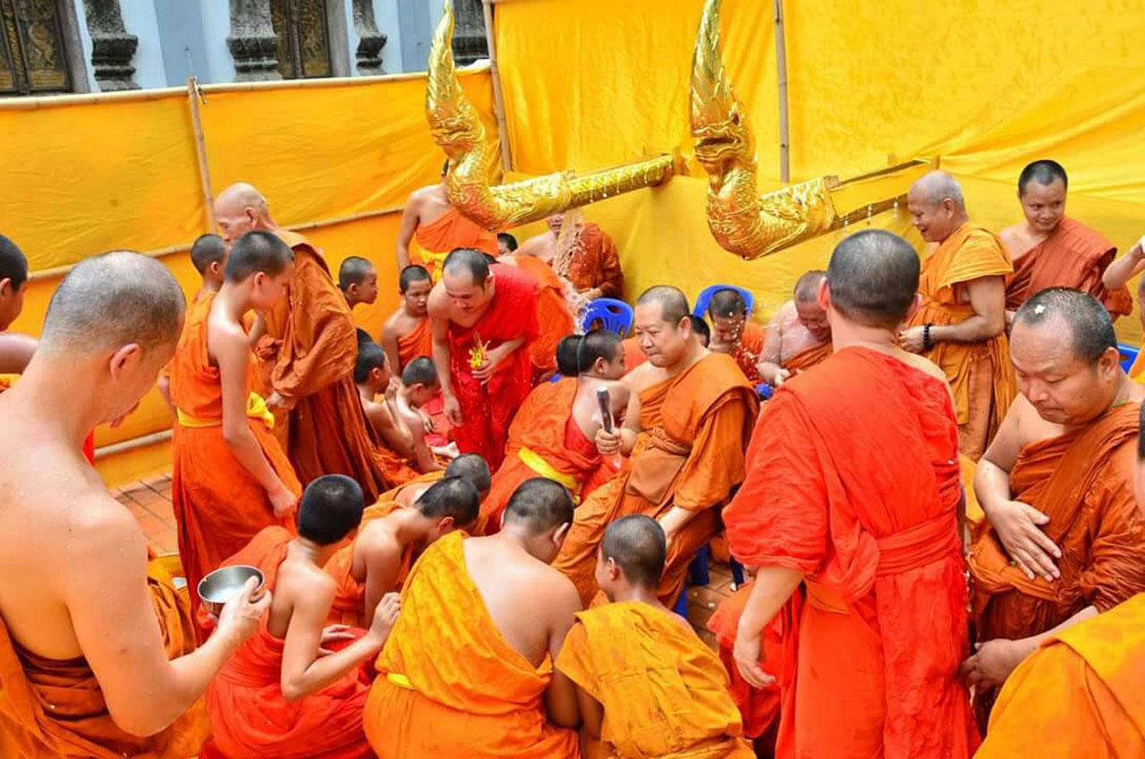 เมื่อวันที่ 15 เม.ย. เป็นวันพญาวันในเทศกาลสงกรานต์ หรือปีใหม่เมืองของล้านนา โดยบรรยากาศตัวเมืองอ.เชียงแสน จ.เชียงราย บริเวณวัดพระธาตุผาเงา ต.เวียง มีพุทธศาสนิกชนแห่กันไปทำบุญขนทรายเข้าวัด พร้อมทั้งนำตุงปักบนกองทราย ขอพรพระและสรงน้ำพระพุทธรูป พระธาตุ และพระสงฆ์อย่างเนืองแน่น