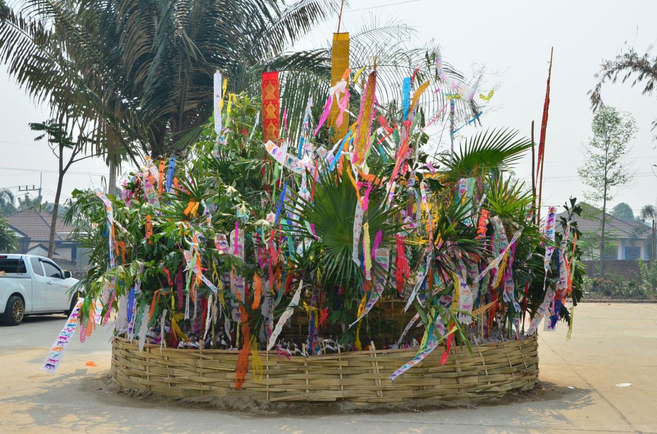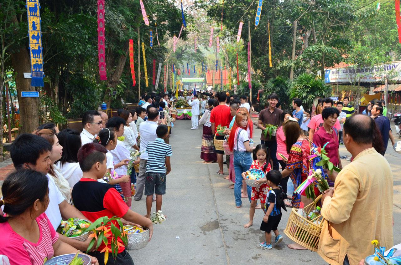 สำหรับวันพญาวัน เป็นวันที่สามของประเพณีปีใหม่เมืองของชาวล้านนา เป็นวันเถลิงศก เปลี่ยนศักราชเริ่มต้นปีใหม่ ซึ่งพุทธศาสนิกชนมีการทำบุญทางศาสนาตั้งแต่เช้าตรู่ และอุทิศส่วนกุศลไปถึงญาติผู้ล่วงลับ หรือเรียกว่า “ทานขันข้าว” หลังจากนั้นนำตุงปักลงบนกองเจดีย์ทราย โดยมีผู้เฒ่าผู้แก่อยู่ร่วมพิธีทานเจดีย์ทราย ถวายช่อตุงปีใหม่ และฟังเทศนาธรรม และมีพระพุทธิญาณมุนี เจ้าอาวาสวัดพระธาตุผาเงา เจ้าคณะอำเภอเชียงแสน ได้นำชาวพุทธตักบาตรทำบุญและปฏิบัติธรรม จากนั้นจัดให้มีการสรงน้ำพระพุทธเจดีย์ สรงน้ำพระสงฆ์โดยมีทำรางท่อน้ำสำหรับให้พุทธศาสนิกชนเทน้ำไหลตามท่อ พระสงฆ์นั่งในกระโจม จากนั้นพุทธิญาณมุนีนำคณะพระสงฆ์เดินเป็นแถวออกมาจากกระโจม เพื่อให้พุทธศาสนิกชนที่รออยู่ทั้ง 2 ฟากถนนภายในวัดสรงน้ำพระสงฆ์ทุกรูป