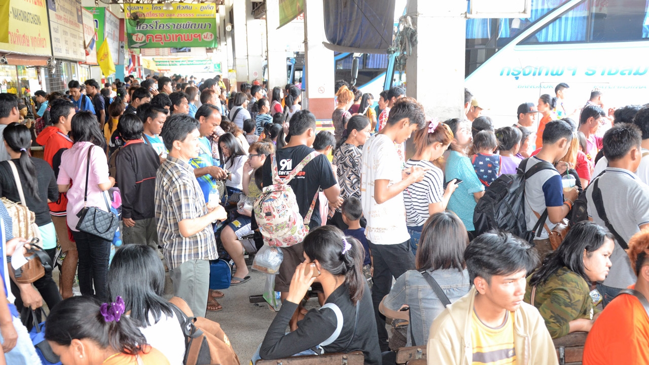 ที่สถานีขนส่งผู้โดยสารเฉลิมพระเกียรติ ต.อุบล อ.เมืองอุบลราชธานี ก็หนาแน่นด้วยผู้โดยสารรอขึ้นรถเพื่อเดินทางกลับ จนแน่นขนัดอาคารผู้โดยสาร ส่วนใหญ่หอบหิ้วกระสอบข้าวสาร และอาหารแห้ง จำพวกปลาตากแห้ง เนื้อแห้ง แจ่วบอง กลับไปด้วย เพื่อช่วยลดค่าครองชีพในการทำงานที่กรุงเทพฯ ทั้งนี้ นายวัลลภ ศรีสง่า นายสถานีเดินรถอุบลราชธานี เปิดเผยว่า ผู้โดยสารที่มีกระสอบข้าวสารไปด้วย ทางผู้ให้บริการจะอนุญาตให้นำขึ้นรถได้เพียงคนละ 1 กระสอบ แต่หากเกินกว่านี้จะคิดค่าบริการกระสอบละ 100 บาท ขณะที่ในสถานีขนส่งนครราชสีมา แห่งที่ 1 และแห่งที่ 2 ก็คึกคักเนืองแน่นไปด้วยผู้คนที่มารอขึ้นรถกลับ กทม. และพบว่าผู้ใช้แรงงานส่วนใหญ่ต่างหอบสัมภาระและเสบียง จำพวกข้าวสาร ข้าวเหนียว พริกแห้ง ปลาร้า ปลาส้ม ฯลฯ กลับมาเช่นกัน
