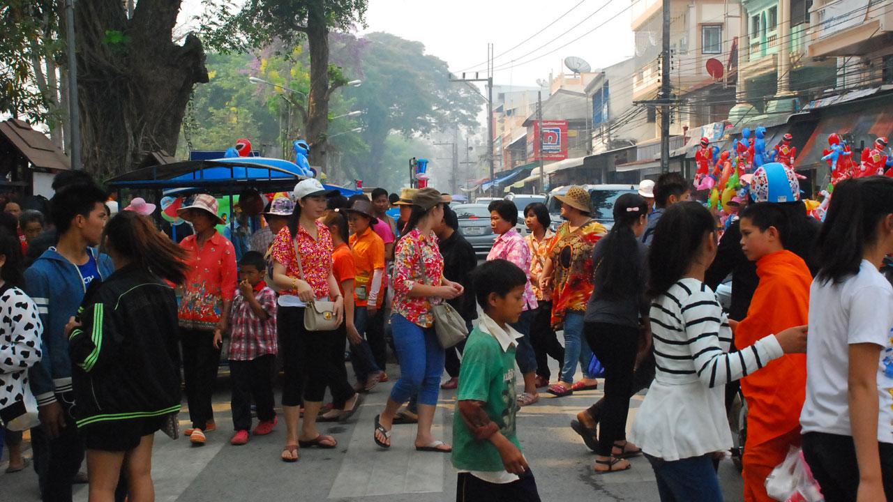 เมื่อวันที่ 17 เมษายน 59 ผู้สื่อข่าวรายงานบรรยากาศ วันที่สองของงานมหาสงกรานต์เมืองเชียงแสน จ.เชียงราย นักท่องเที่ยวเริ่มหลั่งไหลเข้ามาเที่ยวงานสงกรานต์แต่เช้า ทำให้การเล่นน้ำสงกรานต์สนุกสนาน ชาวลาวที่เป็นชาวเขาเผ่าม้ง แห่ข้ามแม่น้ำโขงจากประเทศลาว เข้ามาเที่ยวเล่นน้ำสงกรานต์ โดยมีญาติๆ มารอรับบริเวณ ด่านพรมแดนกันอย่างคึกคัก และชาวเขาหลายชนเผ่าที่พากันมาจากจังหวัดพะเยา เชียงใหม่ ได้นำผลิตภัณฑ์ที่ทำจากไม้ เช่น ม้านั่งหวาย ขันโตกหวาย มาจำหน่ายในราคาถูก ถนนริมโขงตั้งแต่สามแยกหน้าที่ว่าการอำเภอเชียงแสน ไปจนถึงหน้า นรข.เขตเชียงราย มีการตั้งถังน้ำสูบน้ำโขงขึ้นมาเล่นสาดกันกับนักท่องเที่ยวที่เดินผ่านจนเปียกชุ่มฉ่ำ