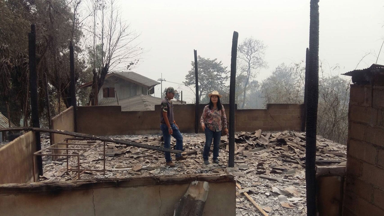 เมื่อวันที่ 18 เม.ย.59 นางอรุณประเสริฐ ศรีวิชัยมูล ผอ.กศน.เมืองเชียงราย เข้าตรวจสอบความเสียหายเหตุไฟป่าไหม้ ศูนย์บริการการศึกษานอกโรงเรียน หมู่ 6 บ.ปางตะไคร้ ต.ห้วยชมภู อ.เมือง เมื่อกลางดึกวันที่ 17 เม.ย.ไฟป่าที่ลุกไหม้จากพื้นที่ดอยสูง ต.ห้วยชมภู อ.เมือง ลามเข้าเผาไหม้อาคารห้องเก็บอุปกรณ์การเรียนการสอนของศูนย์ กศน. ซึ่งเคยเป็นศูนย์พัฒนาเด็กเล็กบ้านปางตะไคร้ ทำให้ตัวอาคารรวมทั้งอุปกรณ์การเรียนการสอนถูกเผาไหม้ 1 หลัง ได้รับความเสียหายเหลือแต่ผนังห้องคอนกรีต