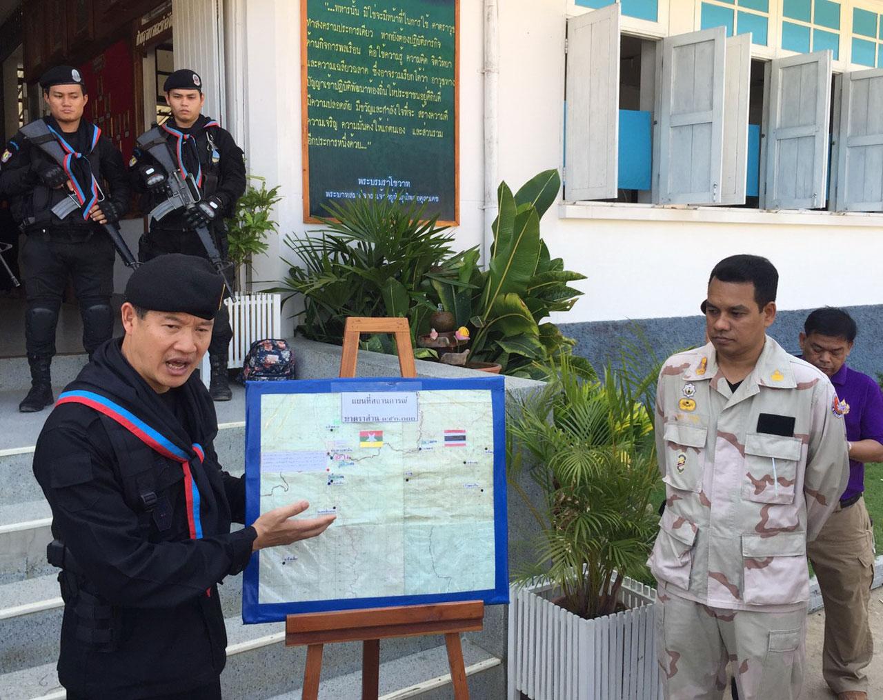 พอ.ภาส วงศ์สารภี ผบ.ฉก.ทพ.36 เผยว่า สืบเนื่องจาก เมื่อวันที่ 22 เม.ย.59 ที่ผ่านมา ได้รับแจ้งเบาะแสว่าจะมีกลุ่มขบวนการลำเลียงยาเสพติดจากประเทศเพื่อนบ้าน ผ่านเข้าเขตไทย ทางช่องทางห้วยปู บ้านเสาหิน ต.แม่สะเรียง อ.แม่สะเรียง จึงได้สนธิกำลังร่วมกับทาง สภ.เสาหิน 20 กำลังพลดักซุ่มสกัดขบวนการลักลอบลำเลียงยาเสพติด ตั้งแต่เย็นวานที่ผ่านมา และในช่วงเช้าของวันนี้ เวลาประมาณ 11.00 น. ได้พบกลุ่มคนบริเวณที่ดักซุ่ม จึงได้แสดงตัวเข้าทำการตรวจค้น แต่กลุ่มคุ้มกัน ที่ตามขบวนขนลำเลียงยาเสพติด ได้เริ่มยิงใส่เจ้าหน้าที่ก่อน ทำให้เจ้าหน้าที่ฝั่งไทยยิงตอบโต้ และเกิดการปะทะกันขึ้น นานประมาณ 5 นาที กองกำลังไม่ทราบฝ่าย ที่คุ้มกันคนลำเลียงยา ได้ถอยหลบหนีเข้าฝั่งประเทศเพื่อนบ้านไป ทั้งนี้ เนื่องจากเสียงปะทะที่ดัง จึงได้แจ้งไปยัง ผบ.ฐานฝ่ายประเทศเพื่อนบ้านว่า มีการยิงต่อสู้กับกลุ่มขบวนขนยาเสพติดเพื่อจะได้ไม่มีการเข้าใจผิด