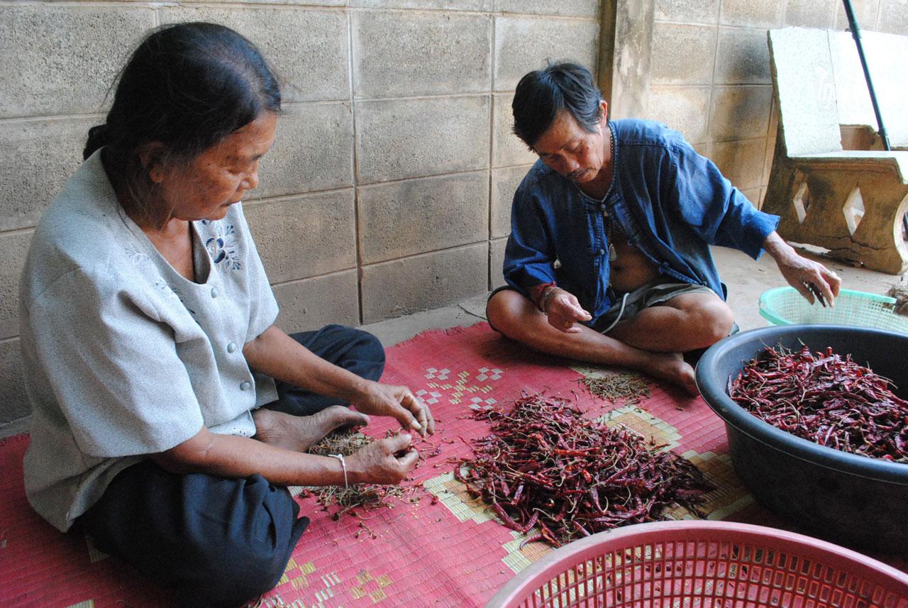 เมื่อวันที่ 24 เม.ย. 59 ผู้สื่อข่าว เดินทางไปตรวจสอบที่บ้านเลขที่ 2/20 ถนนประสานมิตร ต.เมืองสวรรคโลก อ.สวรรคโลก จ.สุโขทัย ซึ่งเป็นบ้านของ นายจำเนียง สิงห์ลอ อายุ 66 ปี เมื่อไปถึงพบว่า บริเวณหน้าบ้านมีกองพริกแจ๋วที่นำมาตากแดดให้แห้งอยู่จำนวน 2 กอง ซึ่งจากการสอบถามนายจำเนียง ที่กำลังนั่งเด็ดขั้วพริกที่ตากแห้งแล้วอยู่ใต้ต้นมะม่วงข้างบ่อน้ำสาธารณะกับนางซิ้ม สิงห์ลอ อายุ 63 ปี ภรรยา