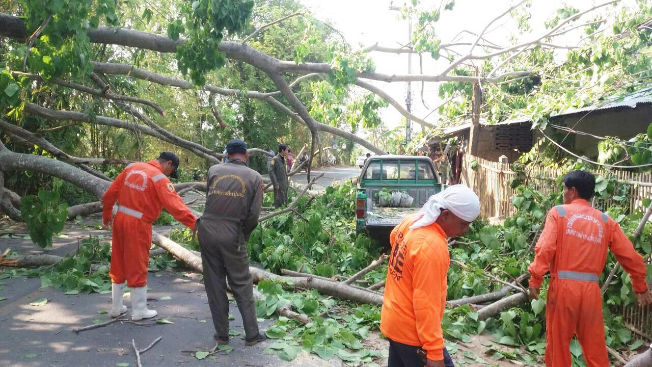 จ.เชียงใหม่ เมื่อเวลา 02.00 น. วันที่ 24เม.ย.นายสว่าง หนักแน่น นายกเทศมนตรีตำบลสันปูเลย อ.ดอยสะเก็ด เปิดเผยว่า เมื่อคืนที่ผ่านมาได้มีพายุลมแรงแต่ไม่มีฝนตก พายุได้พัดกิ่งต้นโพธิ์ อายุ100ปีที่อยู่บริเวณข้างถนนในหมู่บ้านสันปูเลย หมู่ 11 ต.สันปูเลย อ.ดอยสะเก็ด ต้นโพธิ์ได้หักโค่นล้มทับรถปิกอัพมิตซูบิชิ สีเขียวทะเบียน บน 2282 เชียงใหม่ หลังคารถได้รับความเสียหายเล็กน้อยและยังล้มทับบ้านเรือนหลังคาลอนคู่แตกประมาณ 100 แผ่น สาเหตุเพราะข้างในกิ่งต้นโพธิ์เป็นรูและมีใบเยอะมากทานน้ำหนักไม่ไหวจึงหักลงมาใส่รถชาวบ้านและหลังคาบ้านเรือนชาวบ้านเสียหาย ส่วนต้นโพธิ์ต้นนี้อายุนับ 100 ปีขึ้นไปขนาดหลายคนโอบ ตอนเช้าวันเดียวกันได้ร่วมกับนายณรงค์ คำราพิช กำนัน ต.สันปูเลย นายสมเดช แสงอรุณ ผู้ใหญ่บ้านและผู้เกี่ยวข้องช่วยกันตัดกิ่งไม้โพธิ์ เพื่อให้ชาวบ้านได้สัญจรไปมาอย่างสะดวก แต่เหตุพายุถล่มไม่มีคนเจ็บหรือเสียชีวิตแต่อย่างใด.