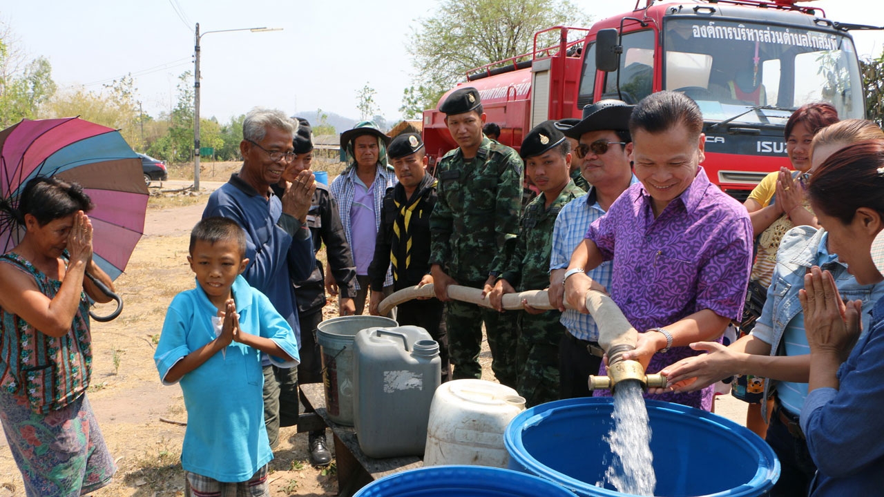 อำเภอโกสัมพีนคร จ.กำแพงเพชร แล้งหนัก นอภ.เร่งแจกจ่ายน้ำให้ปชช. เหตุประปาหมู่บ้านไม่ไหลมา 2 เดือนเต็ม ชาวบ้านบางรายเดือดร้อนไม่มีน้ำอาบ 5-6 วัน ทหารต้องนำรถบรรทุกน้ำขนไปแจก ท่ามกลางความดีใจของชาวบ้าน...