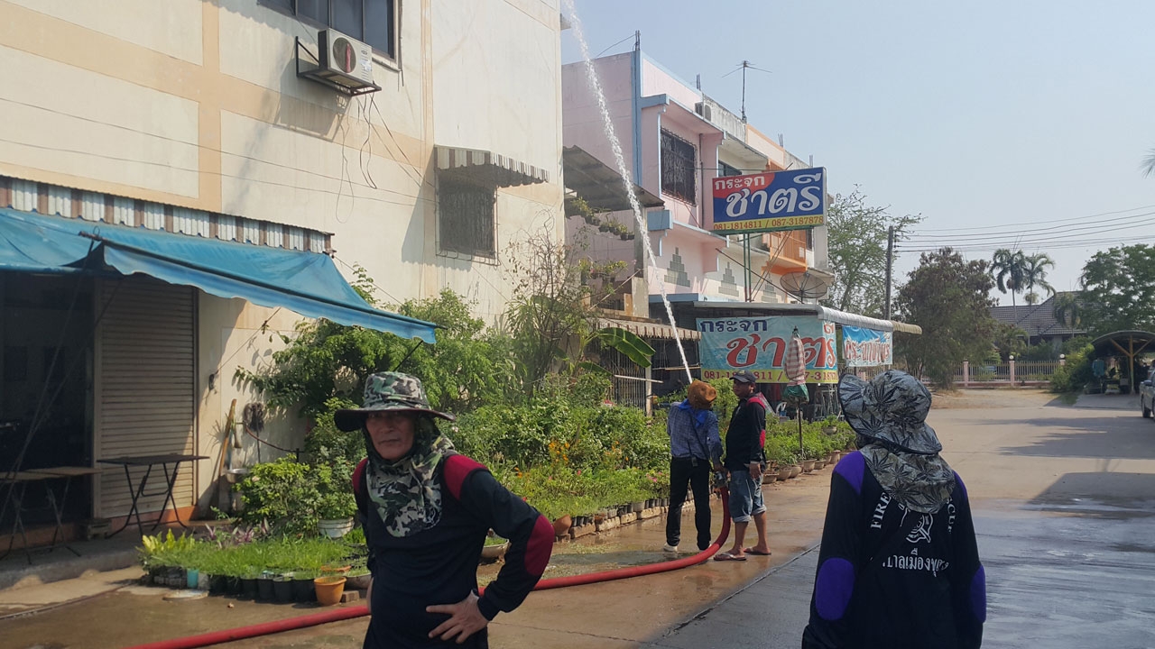 เทศบาลเมืองชุมแสง นำรถดับเพลิง 5 คัน กระจายทั่วชุมชน พร้อมฉีดน้ำขึ้นกลางอากาศกว่า 30 นาที บรรเทาความร้อนที่ระอุในช่วงกลางวันได้เป็นอย่างดี