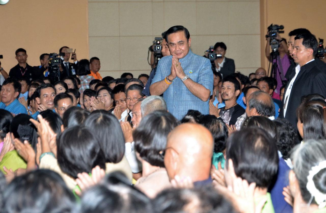 จากนั้น นายกรัฐมนตรี ได้พบปะกับชาวบ้านที่มารอรับประมาณ 1,000 คน โดยได้พูดถึงปัญหาหมอกควัน ปัญหาภัยแล้ง พร้อมเยี่ยมชมนิทรรศการการแก้ไขปัญหาหมอกควัน ไฟป่าของเชียงใหม่และผลการดำเนินการแก้ไขปัญหาหมอกควัน ไฟป่า นโยบายพลิกฟื้นผืนป่าสู่การพัฒนาที่ยั่งยืน การบริหารจัดการน้ำเพื่อบรรเทาปัญหาภัยแล้ง มาตรการส่งเสริมความเป็นอยู่ระดับตำบล (ตำบลละ 5 ล้าน) การพัฒนาเศรษฐกิจฐานรากตามแนวทางประชารัฐ การดำเนินการของมูลนิธิโครงการหลวง และสถาบันวิจัยและพัฒนาพื้นที่สูง (องค์กรมหาชน)