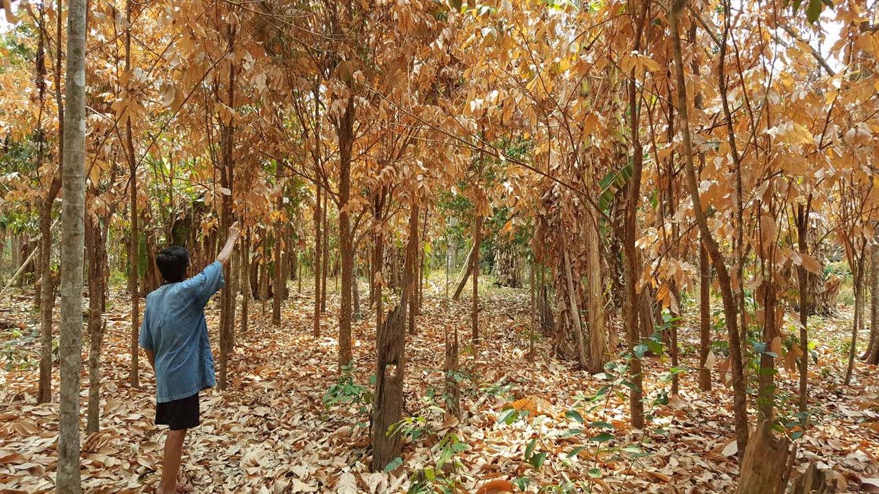 นายสำราญ สวนเขื่อน อายุ 73 ปี เจ้าของสวนลางสาดที่ปลูกไว้ ร่วม 500 ต้น เผยว่า ไม่น่าเชื่อว่าปีนี้จะแล้งจนส่งผลให้ต้นลางสาดแห้งตายแบบนี้ สาเหตุคือน้ำใต้ดินไม่มี แม้ว่าจะใช้น้ำที่บ่อมารดต้นแต่น้ำก็แห้งจนขณะนี้ไม่มีเลย ไม่สามารถยับยั้งได้ ต้นเล็กที่ปลูก กำลังขี้นประมาณ 3-4 เมตร ตายหมด ส่วนต้นใหญ่ๆ ที่ออกผลผลิตแล้ว มีบางต้นยังพอจะรอดหากได้น้ำภายในอาทิตย์หรือสองอาทิตย์นี้ ไม่เช่นนั้นก็ไม่เหลือเช่นกัน