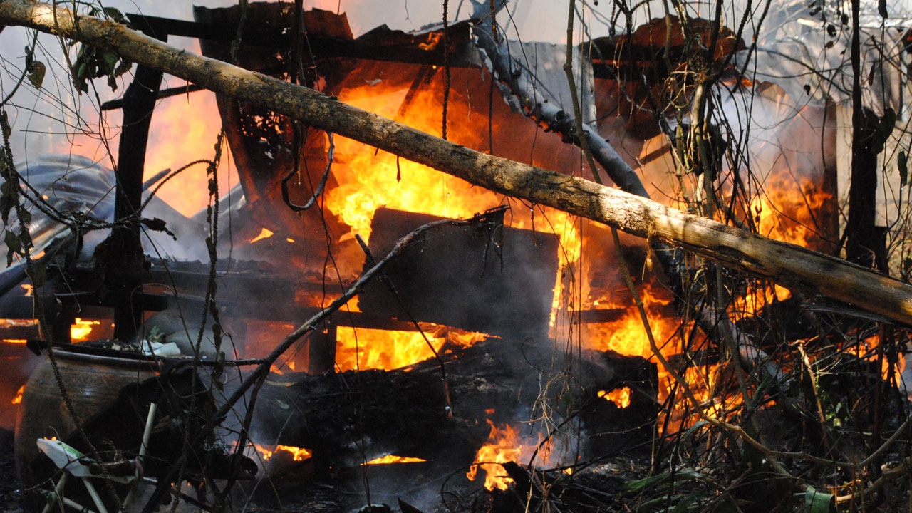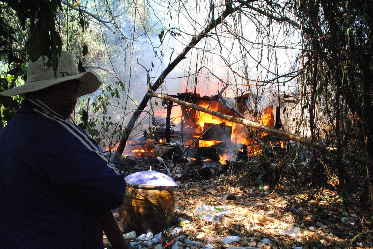 เฒ่าวัย 69 ปี ก่อกองไฟหุงข้าวเตาฟืน สะเก็ดไฟกระเด็นไปติดใบตองแห้งที่อยู่ด้านข้าง ลุกไหม้ลามติดบ้านอย่างรวดเร็ว ร้องตะโกนให้เพื่อนบ้านช่วยดับ แจ้ง จนท.เข้าฉีดน้ำสกัดเปลวเพลิง นานกว่าครึ่งชั่วโมงจึงควบคุมเพลิงไว้ได้