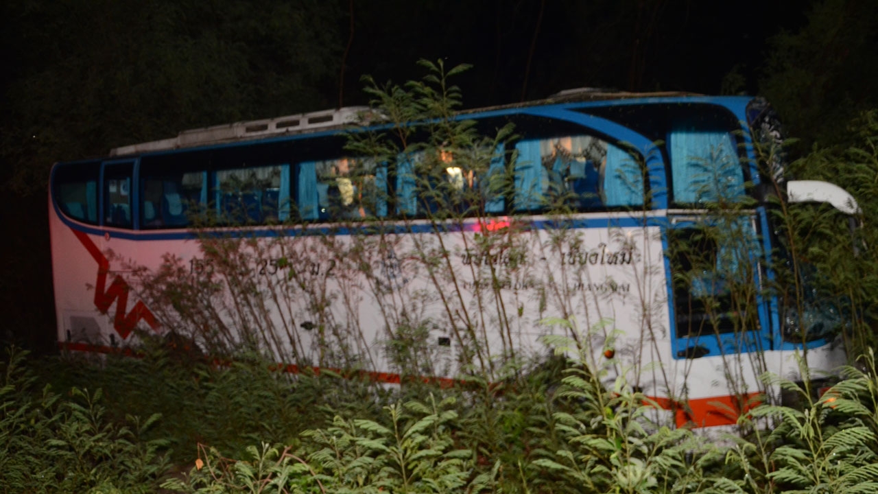 รถทัวร์กรุงเทพฯ-เชียงใหม่ ฝ่าฝนหักหลบต้นไม้ล้มบนถนนพหลโยธิน จ.ลำปาง แฉลบพุ่งข้ามร่องน้ำเข้าป่า คนขับประคองรถอย่างมีสติ ไม่พลิกคว่ำ ผู้โดยสารหวิดตายหมู่ เจ็บเล็กน้อย 8 ราย