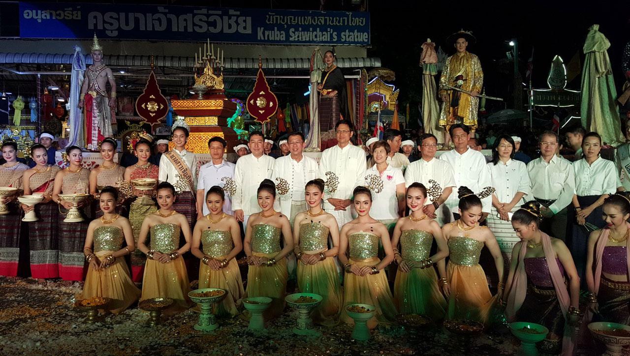 จากนั้นประกอบพิธีขอขมาครูบาเจ้าศรีวิชัย และพิธีเปิดงาน ณ ลานครูบาศรีวิชัย โดยมีพุทธศาสนิกชนทั้งชาวไทย ชาวไทใหญ่ และนักท่องเที่ยวชาวจีน มาร่วมงานและเดินขึ้นดอย ซึ่งมีพิธีเปิดงานอย่างยิ่งใหญ่ มีการแสดงแสง สี เสียง เรื่องราวความเป็นมาของประเพณีขึ้นดอยสุเทพ