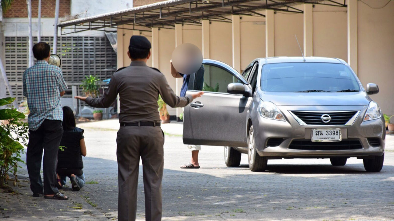 เจ้าหน้าที่ตำรวจและลูกศิษย์กำลังเกลี้ยกล่อม ดร.วันชัย ดนัยตโมนุท ซึ่งก่อเหตุยิง 2 ดร. ดับคามหาวิทยาลัยราชภัฏพระนคร ให้วางปืนที่จ่อหัวตัวเองลง หลังตามไปเจอตัวที่ลานจอดรถโรงแรมสุภาพ ย่าน สะพานควาย.