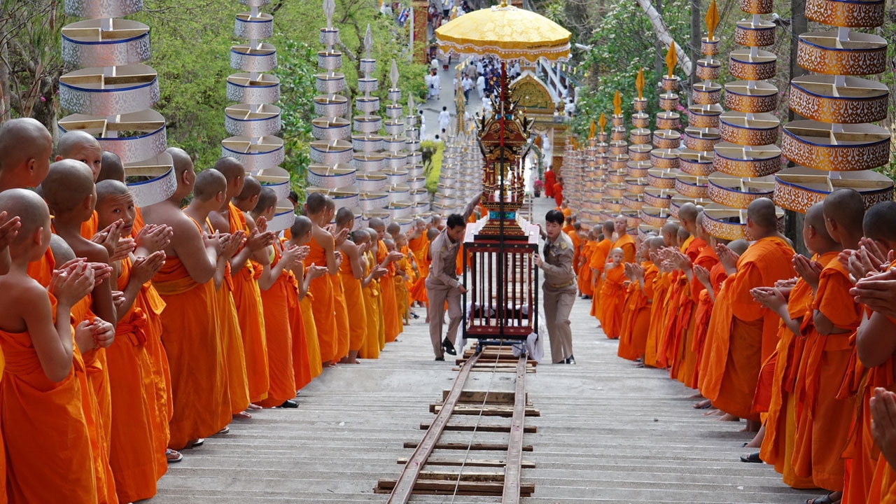 พ่อเมืองเชียงใหม่ พร้อมชาวพุทธ เดินขึ้นวัดพระธาตุดอยสะเก็ด ทำพิธีถวายน้ำสรงพระราชทานพระธาตุในวันวิสาขบูชา ก่อนนำประชาชนถวายนมสดพระศรีมหาโพธิ์ สืบสานประเพณี อ.ดอยสะเก็ด