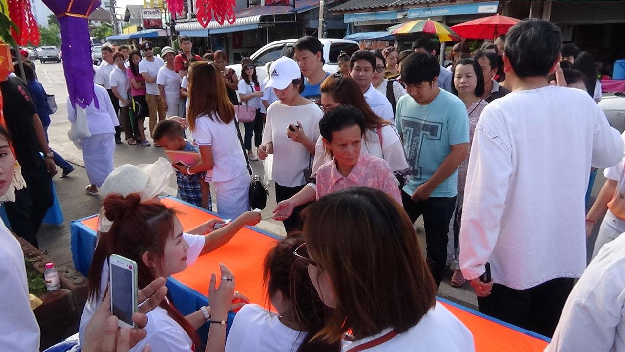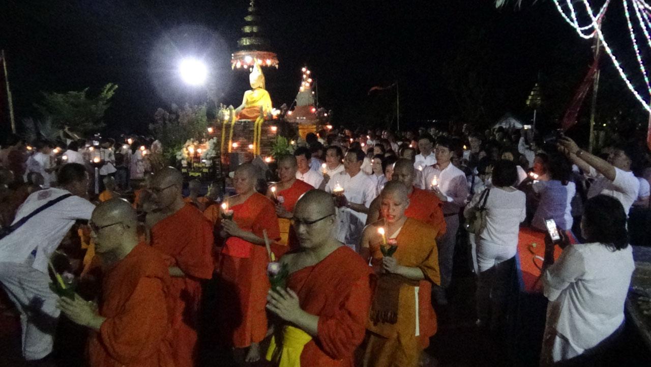 พุทธศาสนิกชนทั้ง จ.พะเยา และ ตจว. ร่วม 5,000 คน แห่ข้ามสะพานบุญเวียนเทียนทางน้ำวันวิสาขบูชา หนึ่งเดียวในโลก รอบวัดติโลกอาราม กลางกว๊านพะเยา จนวัดต้องแจกบัตรคิว