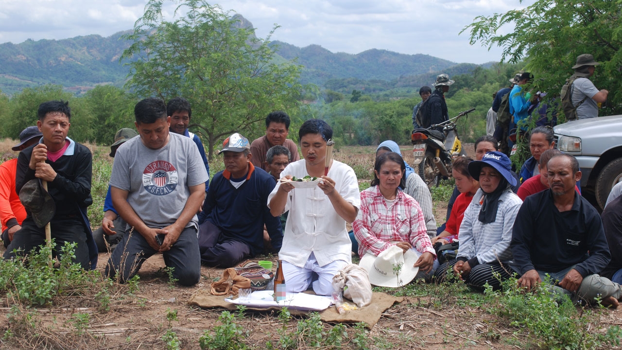 เบื้องต้น ญาติพี่น้องและชาวบ้านคลองน้ำคัน ต.ซับเปิบ กว่า 100 คน ได้เชิญ นายบัญญัติ บัวจันทร์ หมอผี ชาวบ้านตะโกงาน ต.วังโป่ง มาทำพิธีเปิดป่า ขอรับตัว นายบุญจันทร์ หรือ ลุงบุญ คำพุ่ม ผู้หายเข้าไปในป่า บนเขาย่า เพื่อเสริมกำลังใจ.