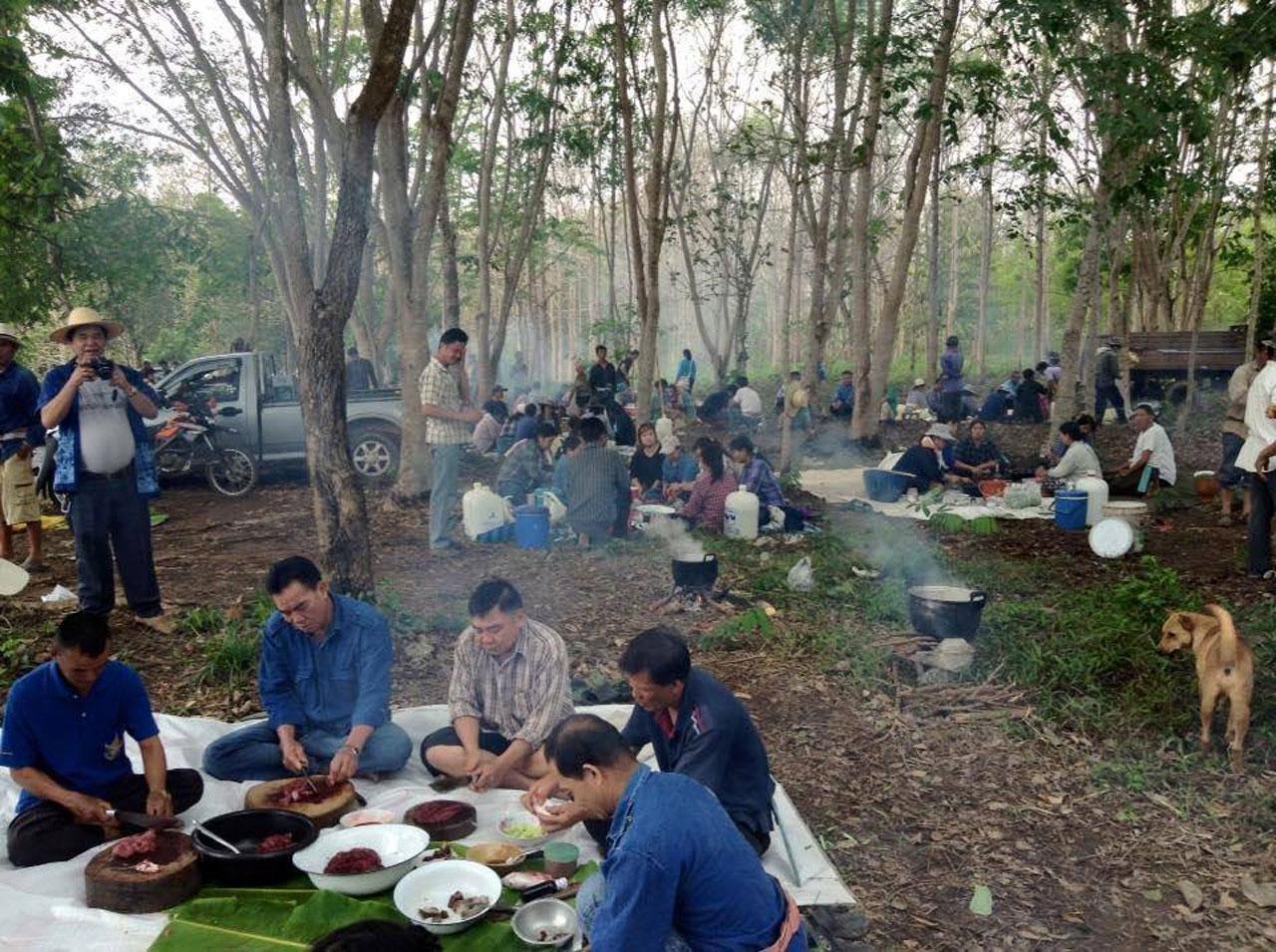 " มิใช่แบ่งเพียงแค่ชิ้นเนื้อล้วนๆ แต่ยังรวมถึงเนื้อส่วนอื่นๆ เช่น ผ้าขี้ริ้ว ตับ ไส้ เลือด ขี้เพี้ย ในแต่ละกอง ให้มีปริมาณเท่ากันทุกกอง แม้ปัจจุบัน ทุกหมู่บ้านจะมีเขียงหมู/เนื้อ ขาย แต่ ปีละครั้ง ชาวบ้านที่นี่ก็ยังคงจัดกิจกรรมนี้อย่างต่อเนื่อง แม้จำนวนหลังคาเรือนในหมู่บ้านจะเพิ่มเป็นหลายร้อยหลังคาเรือน เนื้อที่แบ่งกันได้อาจจะเหลือไม่มาก ก็จะนำมาทำอาหารทานด้วยกัน สร้างความสัมพันธ์อันดีในชุมชนต่อไป" นายวราวุธ กล่าว