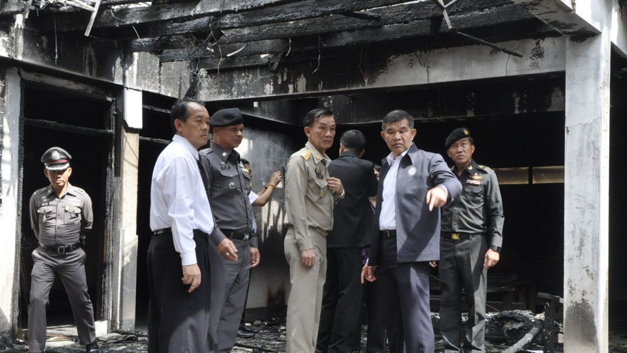 รมช.ศึกษาฯ ตรวจที่เกิดเหตุไฟไหม้หอพัก ร.ร.พิทักษ์เกียรติวิทยา พร้อมรับจะสอบปมที่ชาวบ้านญาติเด็กที่ตายร้องว่า คนดูแลปิดประตูชั้นล่างจากข้างนอก ทำให้เด็กหนีออกมาไม่ได้ต้องตายหมู่ สั่งทุกฝ่ายเข้ามาช่วยเหลือรับผิดชอบ...