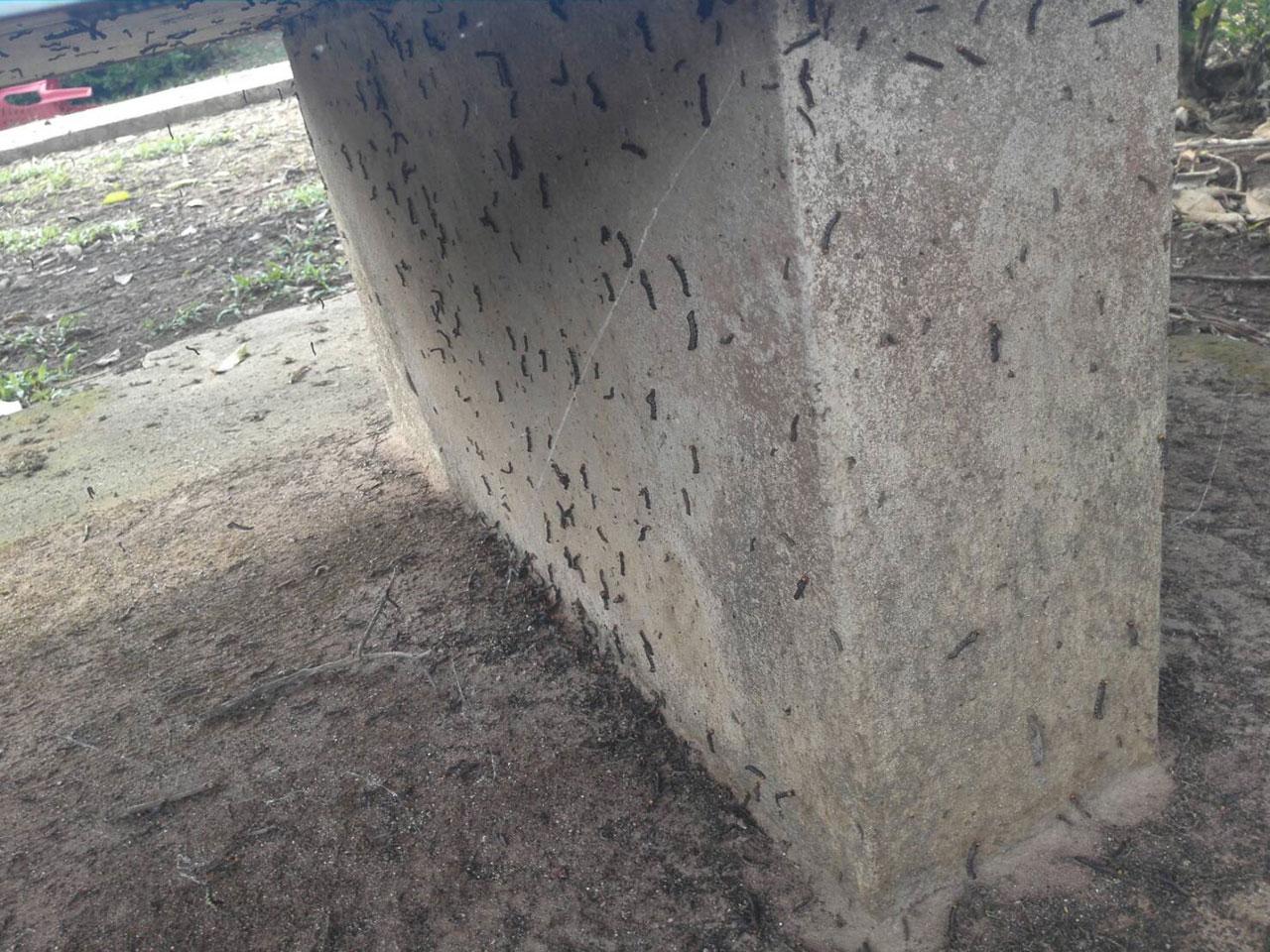 เมื่อเวลา 16.00 น. วันที่ 29 พ.ค. 59 ผู้สื่อข่าวได้รับแจ้งจาก นางอนงค์ลักษณ์ อินปัญญา อายุ 54 ปี ครูชำนาญการพิเศษ ร.ร.บ้านแก่งสฤษดิ์เสนาอุปถัมภ์ หมู่ 7 ต.วังนกแอ่น อ.วังทอง จ.พิษณุโลก ว่า มีหนอนจำนวนมากบุกเข้าอาคารเรียน ชั้นอนุบาล 1 และอนุบาล 2 รวมทั้งบริเวณอาคารเอนกประสงค์ จึงเดินทางไปตรวจสอบ พบ นางอนงค์ลักษณ์ กำลังทำความสะอาดห้องเรียนอยู่ พร้อมกับเด็กนักเรียนและผู้ปกครองช่วยกันกำจัดตัวหนอน โดยใช้น้ำยาล้างจานและใช้แป้งทาตัว โรยใส่กองทัพหนอนที่กำลังคลานไต่ยั้วเยี้ยอยู่บริเวณภายในโรงเรียน โดยเฉพาะอาคารเรียนชั้นอนุบาล 1 และอนุบาล 2 อาคารเอนกประสงค์ สนามเด็กเล่น อ่างล้างมือล้างหน้า รวมทั้งพื้นดิน และตามใบไม้ต้นไม้ที่ปลูกไว้ใกล้อาคารหลายต้น