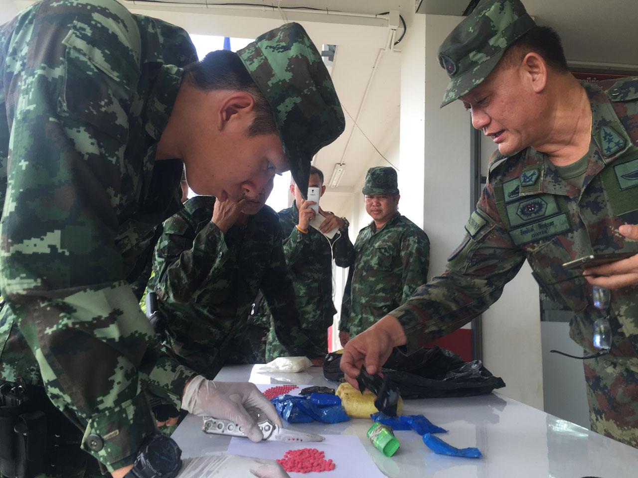 ต่อมา พบชายต้องสงสัยขี่รถจักรยานยนต์มา ก่อนถึงจุดตรวจสกัดประมาณ 150 เมตร ได้ทิ้งรถแล้ววิ่งหลบหนีเข้าป่าข้างทาง เจ้าหน้าที่ได้กระจายกำลังไล่ติดตามแต่ไม่พบ มีเพียงรถจักรยานยนต์ฮอนด้า สีม่วง แต่งซิ่ง ไม่ติดป้ายทะเบียนและถุงย่ามสะพายสีดำ ข้างในมีถุงพลาสติกบรรจุยาบ้า 3 มัด จำนวนประมาณ 6,920 เม็ด จึงยึดเป็นของกลาง ส่งดำเนินคดีต่อไป.