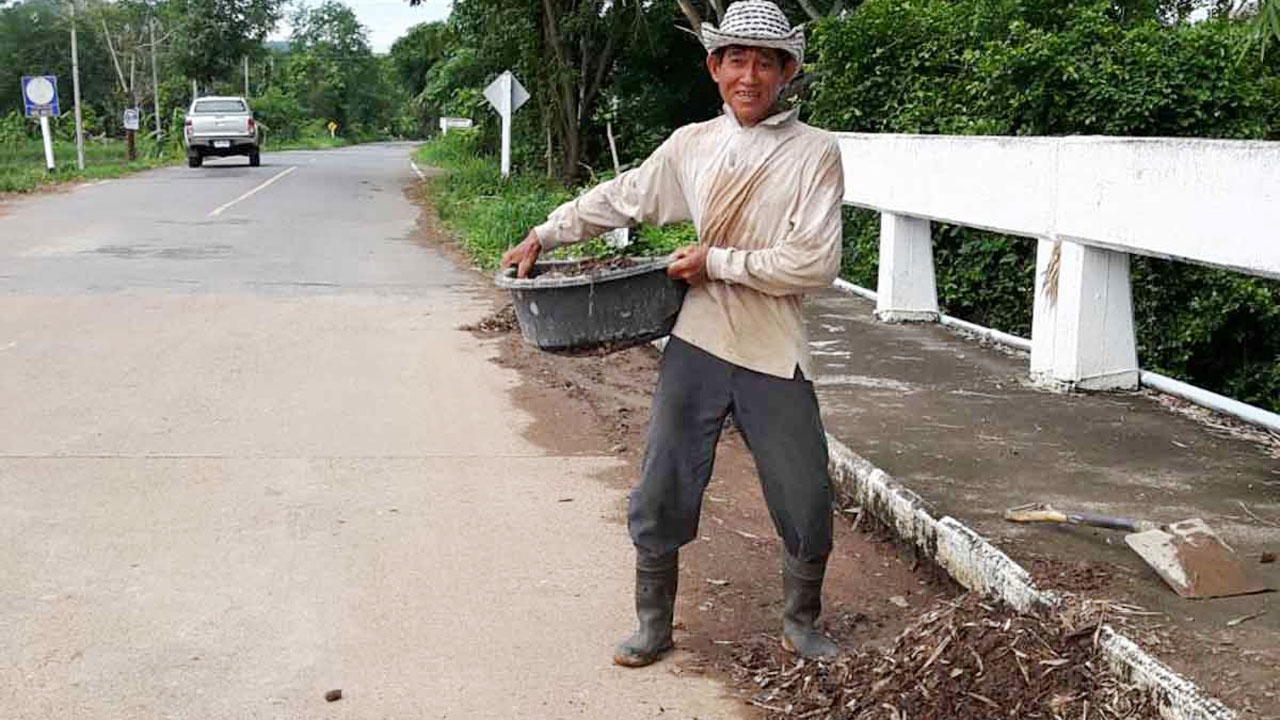 ด้านนายแก้ว เปิดเผยว่า เหตุผลที่มาเก็บเศษใบไม้ใบหญ้าที่สะพาน เนื่องจากขับรถผ่านสะพานในหมู่บ้านหลายสะพานในช่วงฝนตกเห็นน้ำมันขังบนสะพานก็ลงไปดู พบว่ามีใบไม้เศษขยะไหลไปอุดตันตรงท่อระบายบนสะพาน จึงได้ลงไปเก็บออกให้หมด ก่อนเอาเศษใบไม้เหล่านั้นกลับไปทำปุ๋ยหมักที่ทำไว้ใช้ทุกวันนี้ และจะออกไปเก็บใบไม้เศษไม้ที่รกตามสะพายถนนเป็นประจำ