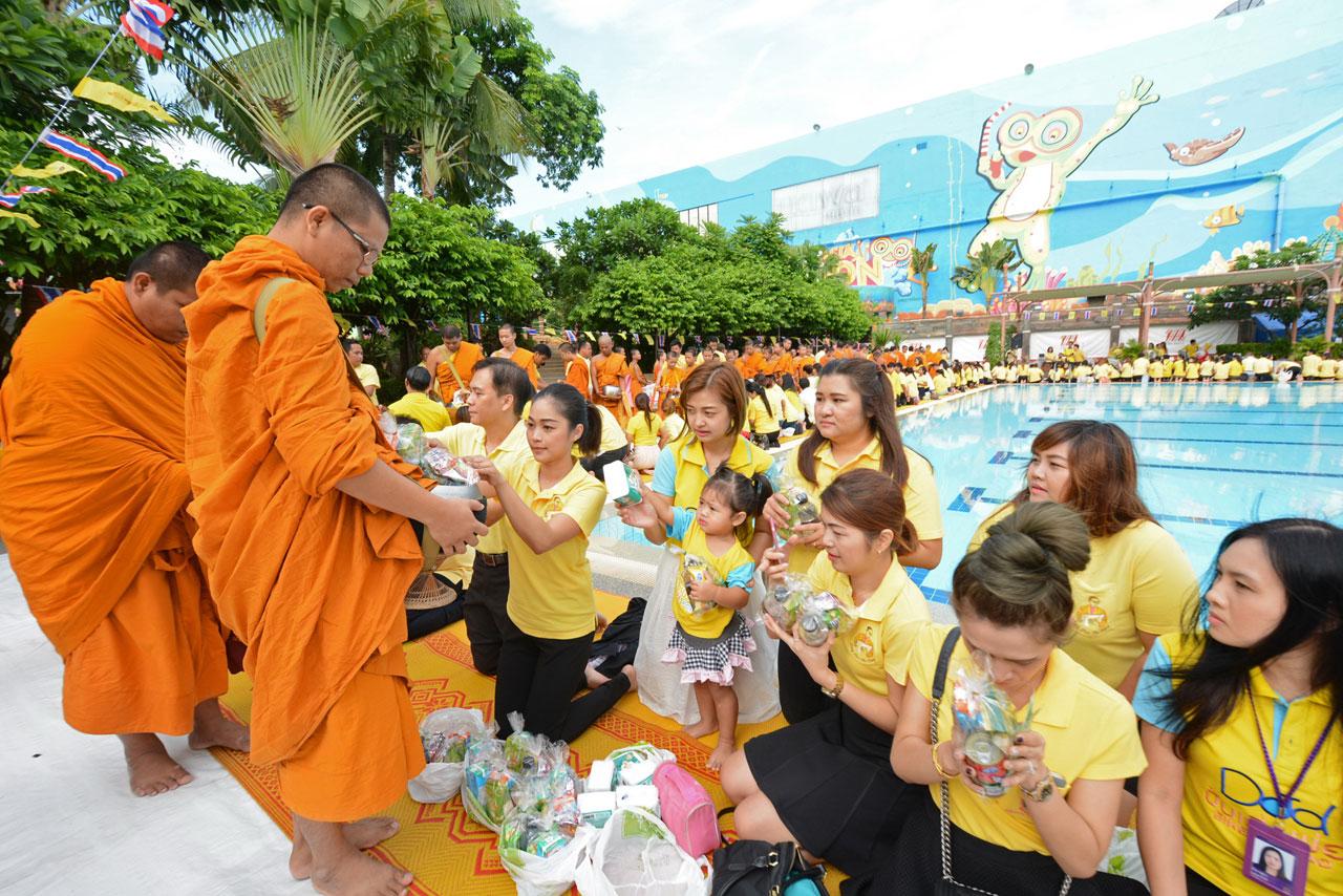 ปชช.ทั่วไทย แห่สวมเสื้อเหลือง ร่วมตักบาตร-ทำบุญ เนื่องในโอกาสมหามงคลเสด็จเถลิงถวัลยราชสมบัติครบ 70 ปี พร้อมทั้งร่วมแปรอักษรในน้ำ ซึ่งสื่อความหมายว่า น้ำพระราชหฤทัยของพระองค์ที่ทรงมีต่อพสกนิกรชาวไทย...