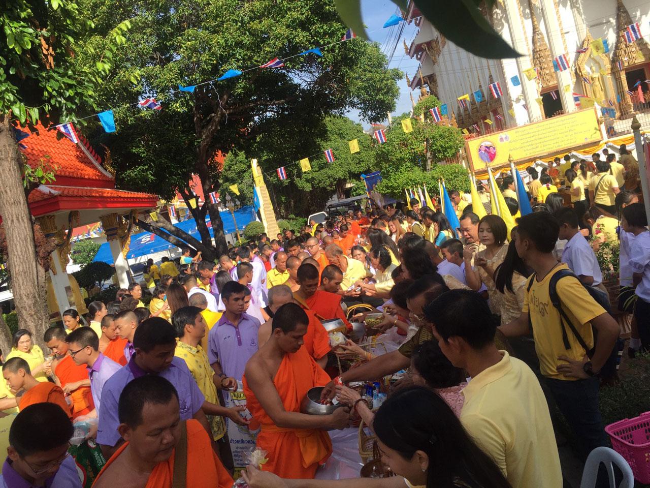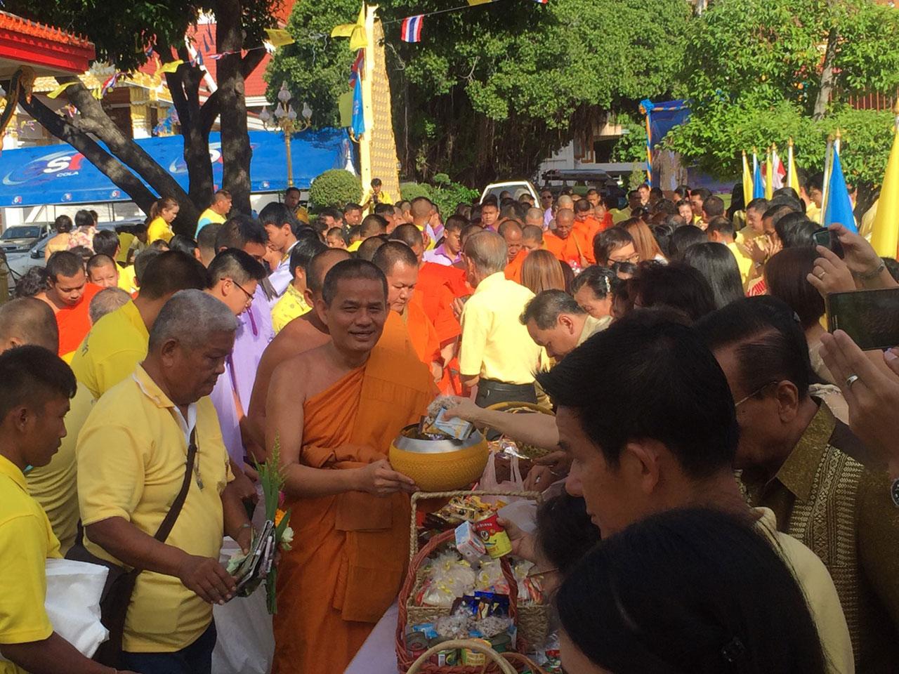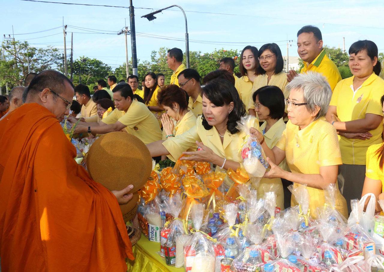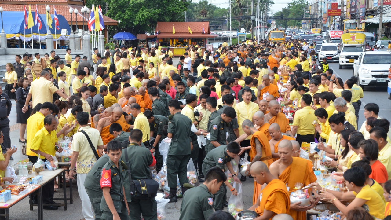 ชาวสงขลาพร้อมใจใส่เสื้อเหลือง ทำบุญตักบาตรถวายในหลวง