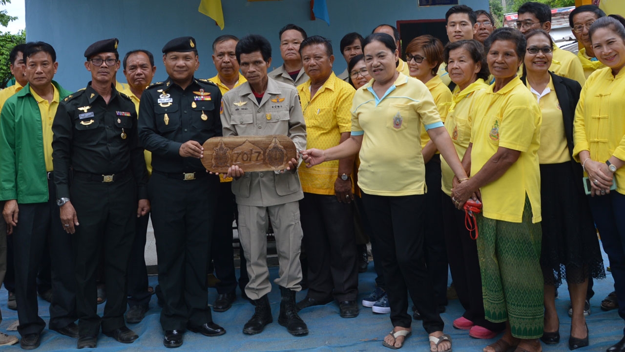 ขณะที่ นายสมัย ทองคำ ได้กล่าวด้วยความดีใจว่า ตนรู้สึกซาบซึ้งในโอกาสมหามงคลที่ พระบาทสมเด็จพระเจ้าอยู่หัว เสด็จเถลิงถวัลยราชสมบัติ ครบ 70 ปี 9 มิถุนายน 2559 และเฉลิมพระเกียรติ สมเด็จพระนางเจ้าฯ พระบรมราชินีนาถ เนื่องในโอกาสมหามงคล เฉลิมพระชนมพรรษา 7 รอบ 12 สิงหาคม 2559 ตนไม่คิดว่าจะได้มีบ้านอยู่อาศัยเป็นของตนเอง เพราะที่ดินทำกินยังไม่มี แต่มีทหารมาบอกจะสร้างบ้านให้ใหม่ รู้สึกดีใจและแปลกใจ เพราะที่อยู่อาศัยเดิมเป็นเพิงมุงด้วยสังกะสี ส้วมก็ไม่สะอาด สงสารลูกและหลานๆ ที่กำลังเรียนอยู่ชั้นประถมศึกษา แต่อยู่อาศัยไม่ถูกสุขอนามัย จึงเป็นห่วงเรื่องสัตว์ที่จะมาทำอันตรายได้