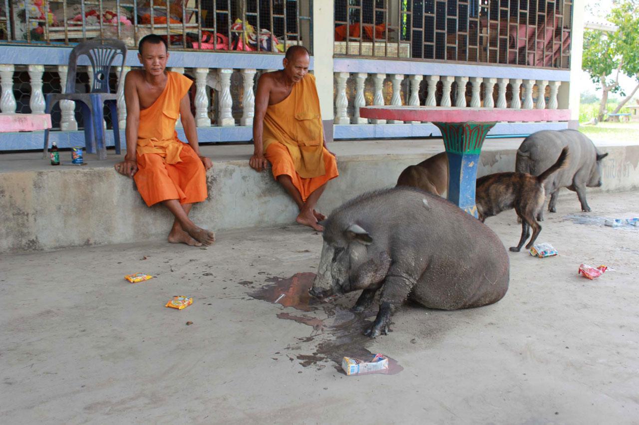 ผู้สื่อข่าวได้เดินทางไปที่วัดไร่ในดง ม. 1 ต.บางระกำ อ.บางระกำ จ.พิษณุโลก หลังมีข่าวว่าพบหมูป่า 2 ตัวที่เชื่องและคอยเดินตามพระที่ออกบิณฑบาตทุกเช้า โดยพระมานะ อานันโท อายุ 53 ปี และพระปาน อรุโณ อายุ 48 ปี พระลูกวัดไร่ในดง กำลังทำความสะอาดวัดอยู่