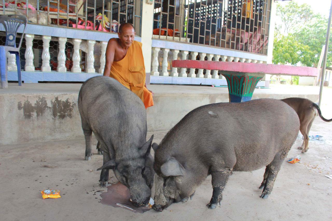 ทั้งนี้เมื่อสอบถามถึงหมูป่าทั้ง 2 ตัว พระปานจึงเรียกมาให้ดู ซึ่งหมูป่าทั้ง 2 ตัวเมื่อได้ยินเสียงเรียกก็เดินมาหาตามเสียงพระปานทันที