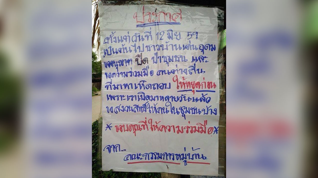 เมื่อวันที่ 12 มิ.ย. 59 นางลิณี ติ๊บแก้ว ผู้ใหญ่บ้านเด่นอุดม ต.แม่มอก อ.เถิน จ.ลำปาง เปิดเผยว่า ชาวบ้านเดือดร้อน เนื่องจากถูกคนต่างถิ่นจำนวนหลายร้อยคนนำรถปิกอัพไม่ต่ำกว่า 70-80 คันต่อวัน เข้ามาหาเก็บเห็ดถอบหรือเห็ดเผาะในเขตป่าชุมชน ซึ่งมีเนื้อที่กว้างขวางกว่าจนทำให้ชาวบ้านในตำบลแม่มอกซึ่งเป็นเจ้าของพื้นถูกแย่งที่ทำมาหากิน จึงนำป้ายมาติดประกาศห้ามคนต่างถิ่นเข้ามาเก็บเห็ด กระทั่งมีคนแชร์ในโลกโซเชียล ต่อมาตนเองพร้อมด้วยคณะกรรมการหมู่บ้านได้ร่วมกันหารือหาทางแก้ไข จึงมีมติว่าต้องตั้งจุดตรวจที่ถนนเข้าหมู่บ้าน ห้ามรถที่บรรทุกคนเข้ามาหาเห็ดเผาะเข้ามาอย่างเด็ดขาด หากเข้ามาเก็บเห็ดจะต้องเสียค่าธรรมเนียมเป็นรายๆ หัวละ 80-100 บาท เพื่อนำเงินมาบำรุงและพัฒนาหมู่บ้าน