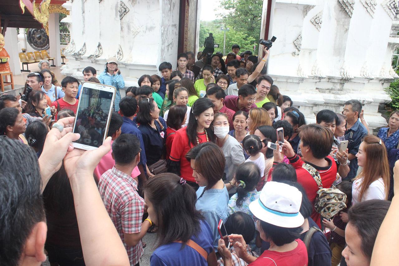 ผู้สื่อข่าว จ.แพร่ รายงานว่า วันนี้ 12 มิ.ย.59 เวลา 09.00 น. น.ส.ยิ่งลักษณ์ ชินวัตร อดีตนายกรัฐมนตรี และ น้องศุภเสกข์ อมรฉัตร หรือ น้องไปป์ บุตรชาย ได้เดินทางมา จ.แพร่ ตามโครงการ “ 5 เหตุผลที่นายกฯ ยิ่งลักษณ์ ต้องมาจังหวัดฉัน” ซึ่ง จ.แพร่ ได้รับโหวตสูงสุดเป็นอันดับ 3 เป็นวันที่ 2 โดยวันนี้ ได้มาทำบุญและประกอบพิธีบายศรีสู่ขวัญ ตามโบราณล้านนา ณ วัดพระธาตุช่อแฮ พระอารามหลวง จ.แพร่ เมื่อมาถึงบริเวณ ลานวัดพระธาตุช่อแฮ มีประชาชนแฟนเพจมาต้อนรับ เป็นจำนวนมาก ต่างชื่นชมและมอบช่อดอกไม้ต้อนรับด้วยหน้ายิ้มแย้มแจ่มใส พร้อมกับ นายวรวัจน์ เอื้ออภิญญากุล นพ.ทศพร เสรีรักษ์ นางปานหทัย เสรีรักษ์ นพ.นิยม วิวรรธนดิฐกุล อดีต ส.ส.แพร่