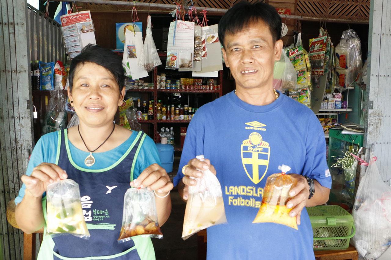 เมื่อวันที่ 13 มิ.ย. ผู้สื่อข่าวรายงานว่า ที่ร้านขายของชำ บ้านเลขที่ 134 ปี ถนนวัดพระบรมธาตุ-นครชุม หมู่ 3 ต.นครชุม อ.เมือง จ.กำแพงเพชร ที่ทุกช่วงบ่ายจะมีคนมายืนรอ ในมือถือบัตรคิวเข้าแถวเพื่อซื้อแกงถุงกันจนแน่นหน้าร้าน มีนางสมหวัง ธาระธาร อายุ 49 ปี เป็นเจ้าของร้านและคนตักขาย โดยวันนี้บนโต๊ะมีอาหารใส่หม้อมาตั้งวางเรียงจำนวน 5 อย่าง ประกอบด้วย แกงเผ็ดหน่อไม้กับเห็ดเผาะ ต้มยำปลาทับทิม แกงเผ็ดฟักทอง หมูหวาน และแกงจืดเต้าหู้หมูสับ แต่บางวันก็มีถึง 8 อย่างแล้วแต่ว่ามีเวลาทำมากน้อยเพียงใด