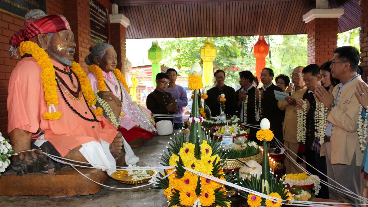 ต.แม่เหียะ ทำพิธีเลี้ยงดง "ปู่แสะ-ย่าแสะ" เชือดควายหนุ่มเป็นเครื่องเซ่น สานประเพณีเก่าแก่นับ 200 ปี เชื่อ ร่มเย็นเป็นสุข ป่าไม้สมบูรณ์ ฝนตกตามฤดู การเกษตรได้ผลดีตลอดปี