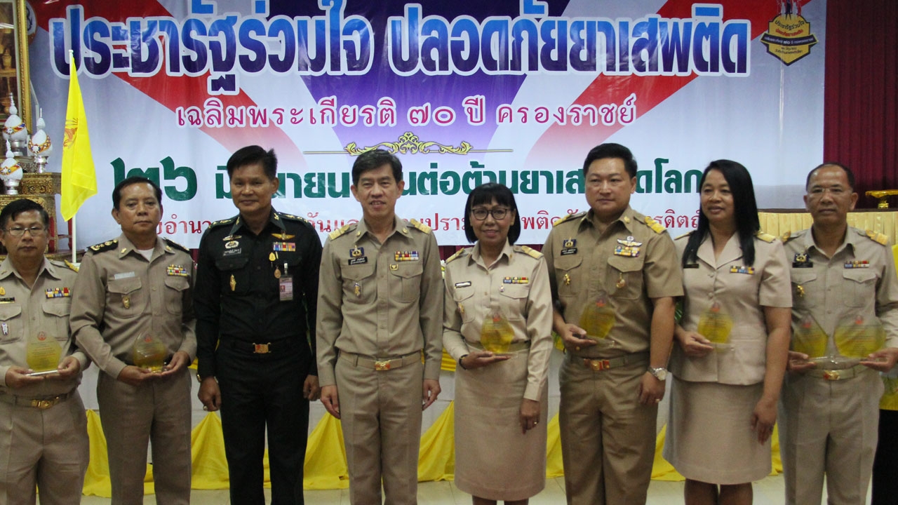เมื่อเวลา 10.30 น. วันที่ 24 มิ.ย. 59 ที่ศาลาประชาคม (หน้าศาลากลางหลังใหม่) อ.เมือง จ.อุตรดิตถ์ นายสุรศักดิ์ เจริญศิริโชติ ผวจ.อุตรดิตถ์ เป็นประธานจัดกิจกรรมรณรงค์ประชาสัมพันธ์ เนื่องในวันต่อต้านยาเสพติดโลก ซึ่งจะตรงกับวันที่ 26 มิถุนายน ของทุกปี และในปี 2559 นี้ เป็นปีมหามงคลที่พระบาทสมเด็จพระเจ้าอยู่หัวเสด็จเถลิงถวัลยราชสมบัติ ครบ 70 ปี และสมเด็จพระนางเจ้าฯ พระบรมราชินีนาถ ทรงเจริญพระชนมพรรษา 84 พรรษา พร้อมอ่านสารจากนายกรัฐมนตรี มอบโล่ ให้ 26 องค์กร 36 ราย