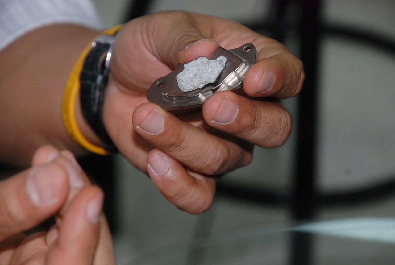 จากนั้น ผศ.ดร.ศราวุฒิ ได้นำเครื่องไกเกอร์มูลเลอร์เคาน์เตอร์ ซึ่งเป็นเครื่องมือวัดธาตุกัมมันตรังสี โดยมีมิเตอร์ที่มีหน้าปัดบอกปริมาณรังสีได้ มาทดลองตรวจวัดกับเศษวัตถุดังกล่าว ก็พบว่าไม่มีธาตุกัมมันตรังสีที่เกินธรรมชาติแต่อย่างใด จึงมั่นใจได้ว่าไม่มีอันตรายต่อผู้ที่ครอบครอง แต่อย่างไรก็ตาม ต้องมีการส่งตรวจที่องค์การบริหารการบินและอวกาศแห่งชาติ หรือ นาซา เพื่อตรวจสอบอย่างละเอียดอีกครั้งว่าก้อนหินดังกล่าวเป็นชิ้นส่วนของอะไร และมีแร่ธาตุอะไรประกอบอยู่บ้าง.