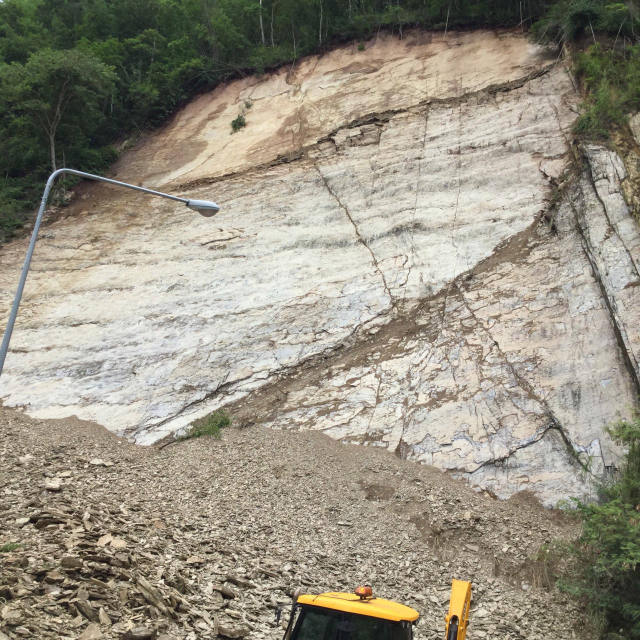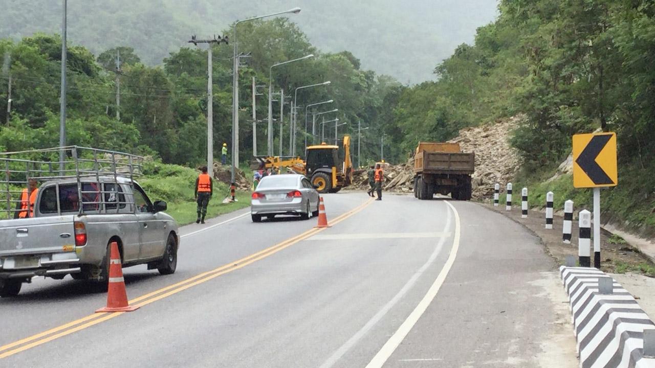 พันโทณฑี ทิมเสน ผบ.ม.พัน.28 กล่าวว่า สืบเนื่องมาจากมีฝนตกต่อเนื่องช่วงหลายวันที่ผ่านมา จึงทำให้ดินและหินชั้นบริเวณดังกล่าวเกิดความชุ่มน้ำจนเกิดการทรุดพังทลายลงมา เดชะบุญ ขณะเกิดเหตุไม่มีรถยนต์วิ่งสัญจรผ่าน จึงทำให้ไม่มีใครได้รับบาดเจ็บหรือเสียชีวิต