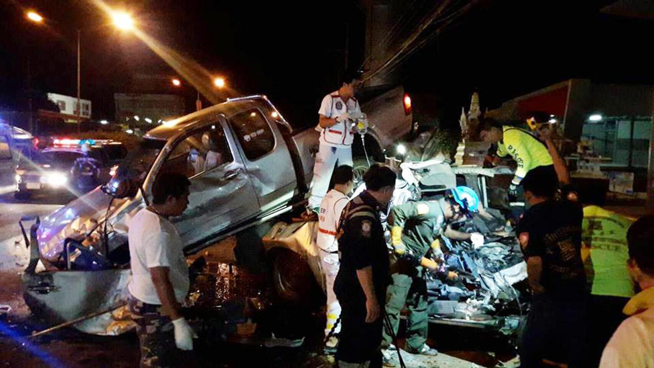 หนุ่มใหญ่ขับปิกอัพ เสียหลักพุ่งข้ามเลน ประสานงากระบะขนผัก จนเหินขึ้นไปอยู่บนรถคู่กรณี พ่อแม่ลูกดับยกครัว 3 ศพ ที่นครสวรรค์ คาดหลับใน...