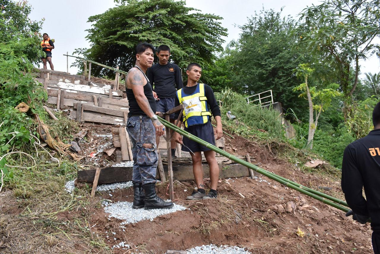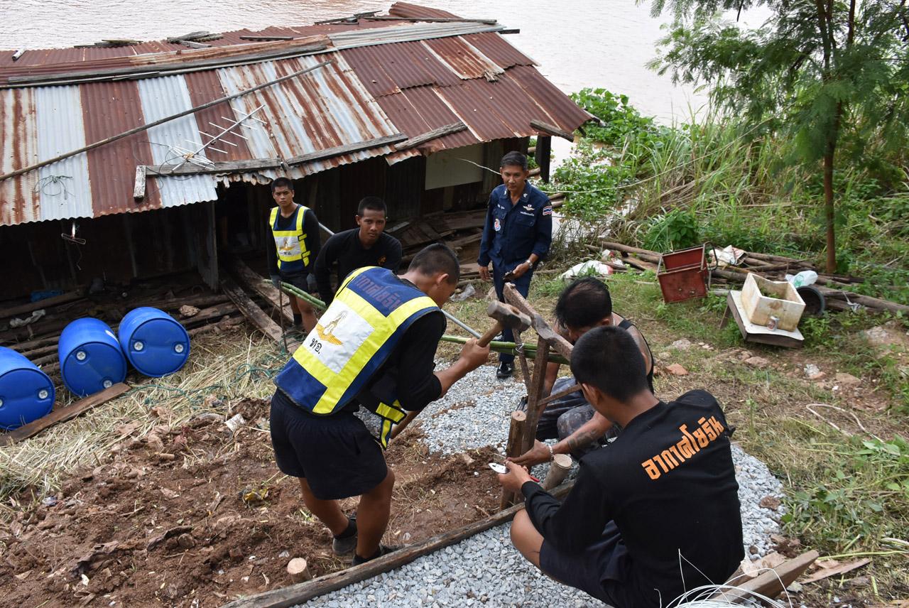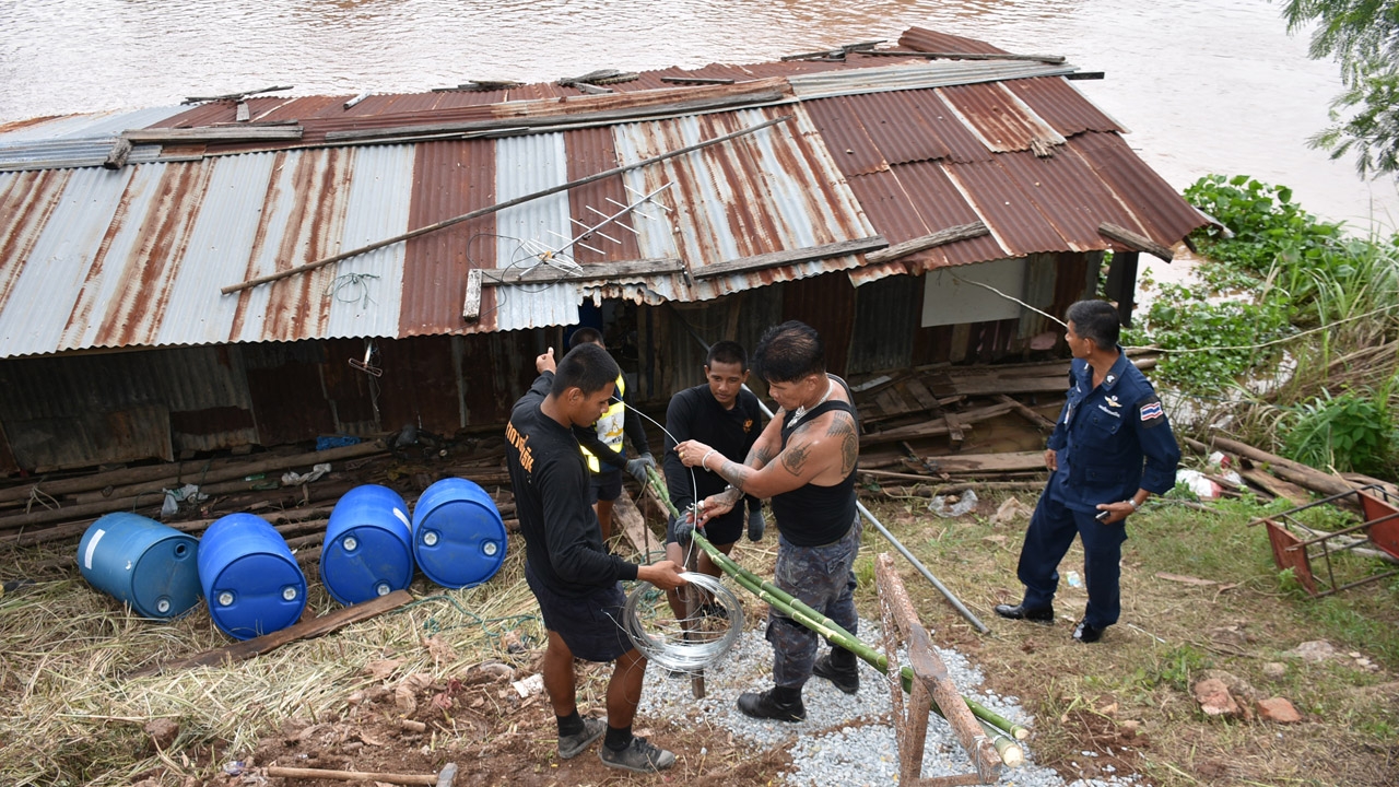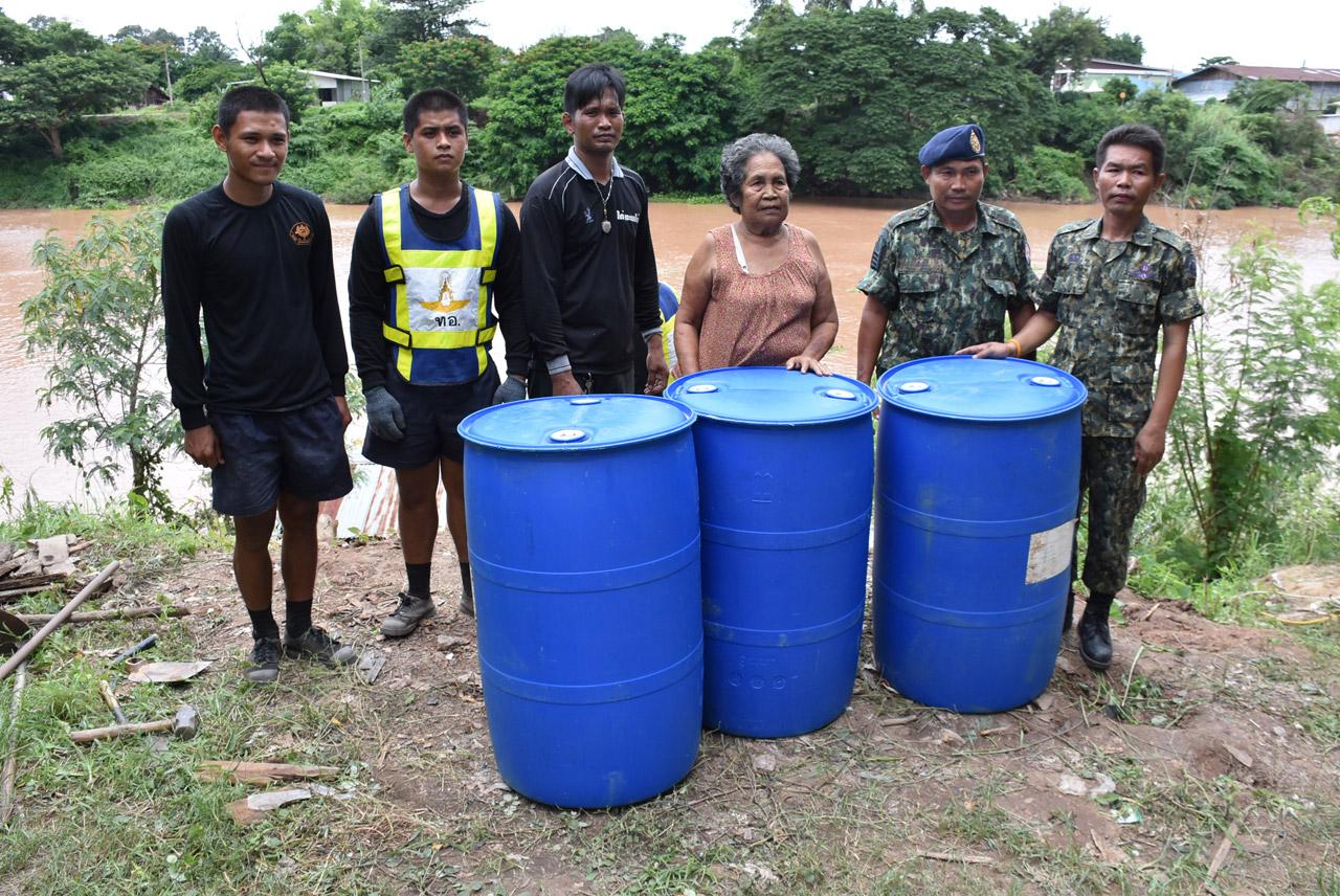 นอกจากนี้ยังนำถังแกลลอนมาหนุนแพให้ใหม่ด้วย ไม่รู้ว่าสภาพไม้ของแพที่ผุพังจะรับไหวหรือเปล่า หากไม่ไหวจริงๆ ก็ต้องเดือดร้อนจัดหาใหม่อีก หน่วยงานทหารก็คงไม่มีงบมาช่วยอะไรได้มากมายจึงอยากวอนผู้ใจบุญช่วยเหลืออีกทางหนึ่ง แต่ความช่วยเหลือของทหารและหน่วยงานที่เกี่ยวข้องในวันนี้เหมือนชุบชีวิตให้กับตน