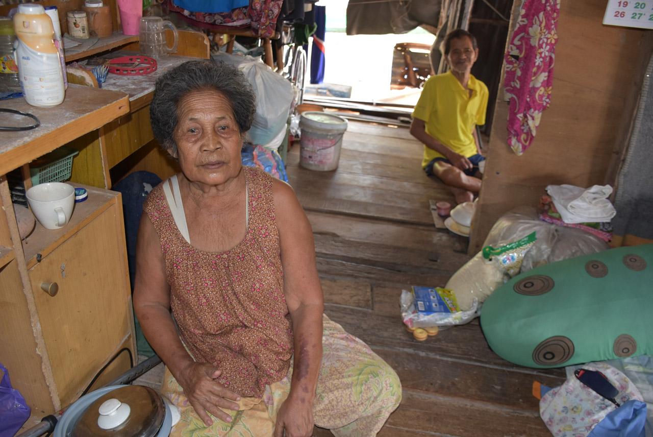 นางมูล กล่าวว่า ตนกับสามีมีรายได้จากเบี้ยยังชีพ 2 คน 1,200 บาท ทุกวันนี้ต้องจ่ายค่ายาค่ารักษาสามี ค่าไฟฟ้าเดือนหนึ่งประมาณ 400 บาท ที่เหลือก็ซื้ออาหารกินกัน ข้าวก็ต้องหุงสองหม้อเล็กๆ เนื่องจากต้องแยกกันกินกับสามี เพราะสามีติดเชื้อ ต้องกินข้าวอ่อนๆ อาหารรสจืดๆ ตอนนี้ตนเข่าก็ไม่ดีเวลาขึ้นลงแพลำบากมาก เมื่อทางทหารกองบิน 46 มาทำทางขึ้นลงให้ใหม่ มีราวสำหรับจับพยุงตัวเวลาเดินด้วยทำให้สะดวกขึ้น