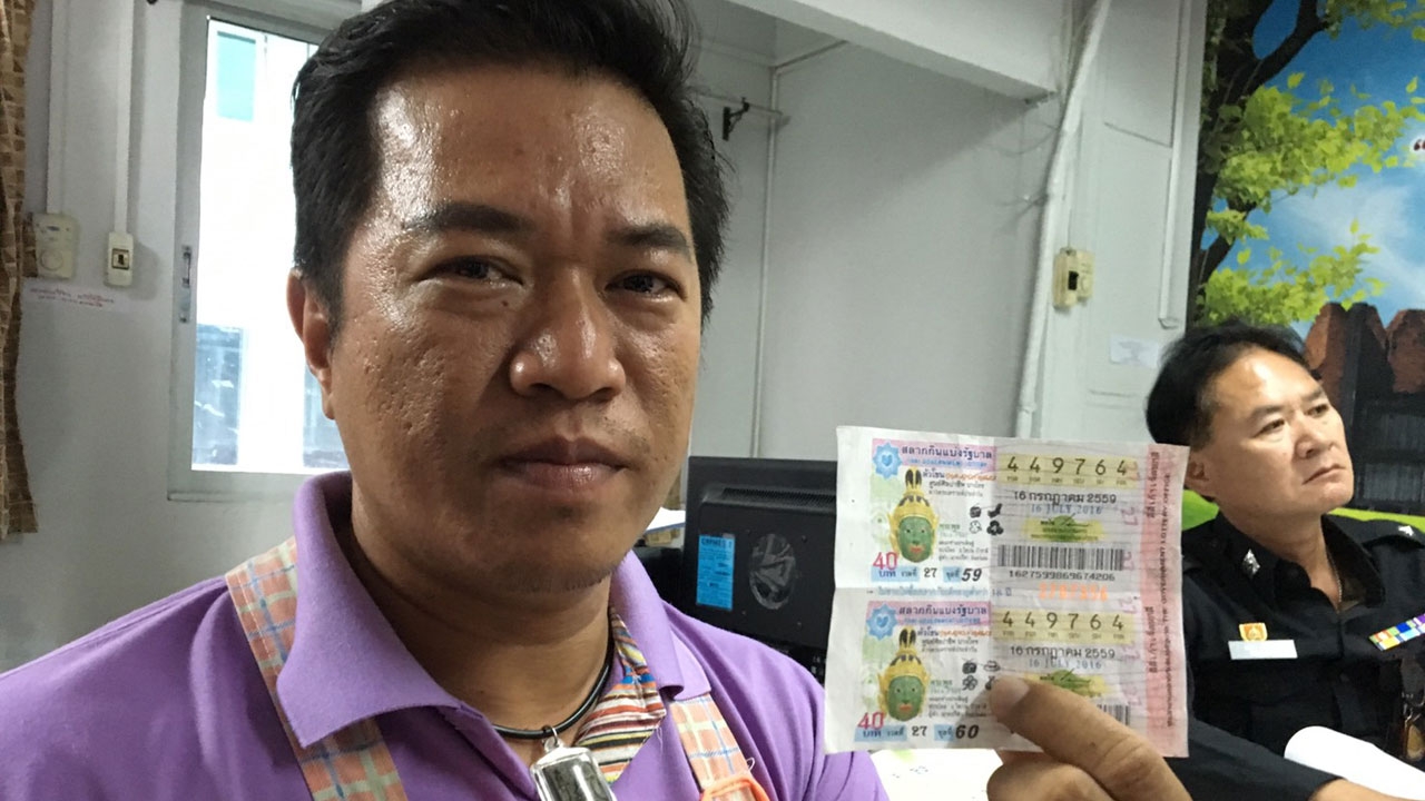 เมื่อเวลา 17.00 น. วันที่ 16 ก.ค.59 พ.ต.ท.ชัยกร ไชยพรม สารวัตร (สอบสวน) สภ.เมือง เชียงใหม่ ได้รับแจ้งจากนาย ธนนท์ อินตรา อายุ 39 ปี อยู่บ้านเลขที่ 111/6 ถนนระแกง ต.ช้างคลาน และเป็นเจ้าของร้านอาหารไส้ทอด ย่านหน้าโรงฆ่าสัตว์เทศบาลนครเชียงใหม่ ถนนประชาสัมพันธ์ ต.ช้างคลาน ในตัวเมืองเชียงใหม่ พร้อมกับภรรยา นำลอตเตอรี่ ถูกรางวัลที่ 1 งวดประจำวันที่ 16 กรกฎาคม 2559 หมายเลข 499764 จำนวน 1 ใบ ได้เงินรางวัล 6 ล้านบาท มาขอลงบันทึกประจำวัน ไว้เป็นหลักฐาน โดยมีนายตำรวจ และประชาชน ที่มาติดต่อราชการ เข้ามาแสดงความยินดี กับนายธนนท์ด้วย นอกจากนั้น นายธนนท์ ยังถูกลอตเตอรี่ รางวัลเลขท้าย 2 ตัว หมายเลข 55 อีก จำนวน 6 ใบ