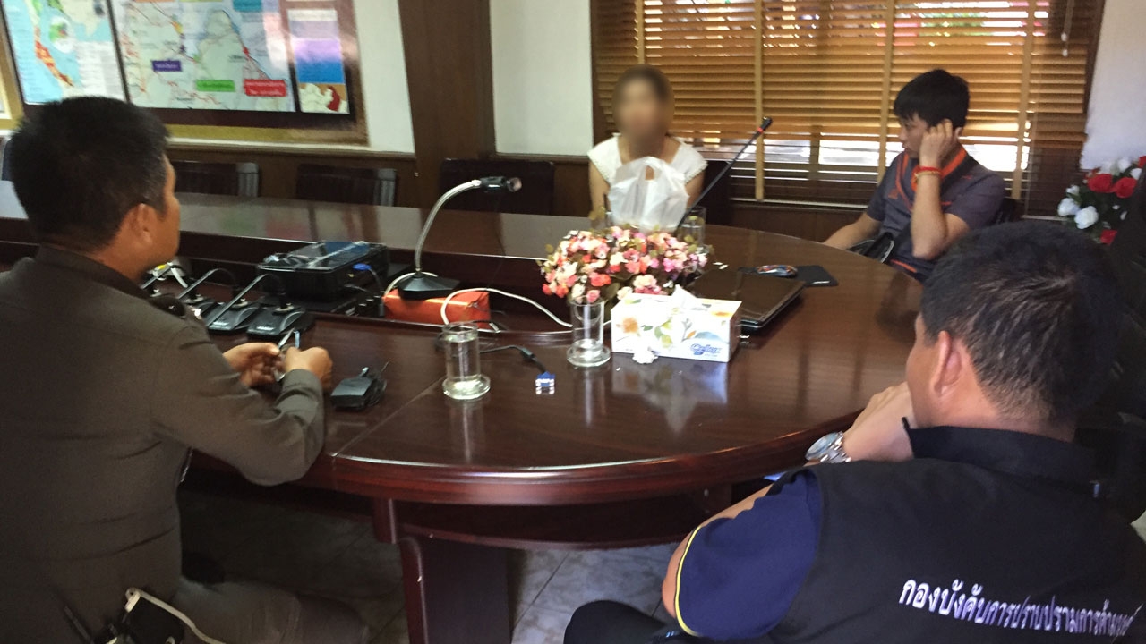 เมื่อเวลาประมาณ 16.00น. พล.ต.ท.ศานิตย์ซึ่งเดินทางมาถึง ก็ได้เข้าไปพูดกับนางกาบแก้ว พร้อมถามว่า ได้ลักทรัพย์ของนางไก่ไปจริงหรือไม่ นางกาบแก้ว ตอบว่า ไม่ได้ลักทรัพย์อะไรไป ซึ่งทาง พล.ต.ท.ศานิตย์ ได้กล่าวว่า ถ้าไม่ได้ทำผิดก็ไม่ต้องกลัว เพราะรัฐบาลไทย กระทรวงยุติธรรม กระทรวงพัฒนาสังคมและความมั่นคงของมนุษย์ สำนักงานตำรวจแห่งชาติ กองบัญชาการตรวจคนเข้าเมือง และกองบัญชาการตำรวจนครบาลซึ่งเป็นต้นเรื่องที่เกิดขึ้นได้ร่วมมือกัน จะให้ความเป็นธรรมและให้การช่วยเหลือดูแลอย่างเต็มที่ เพื่อให้นางกาบแก้ว หรือ คนลาวซึ่งเป็นเพื่อนบ้านเกิดความเชื่อมั่นว่า ประเทศไทยให้ความยุติธรรมกับต่างชาติทุกคน แล้วจะได้รู้ว่าประเทศไทยน่าอยู่ ซึ่งคนไทยทุกคนก็อยากเห็นภาพลักษณ์ที่ต่างชาติเข้ามาท่องเที่ยว มาลงทุนในประเทศไทย ให้เกิดความเชื่อมั่นในกระบวนการยุติธรรมของไทย จากนั้น เจ้าหน้าที่ได้นำตัว นางกาบแก้ว พร้อมแฟนหนุ่ม เข้าห้องประชุมเพื่อสอบสวน