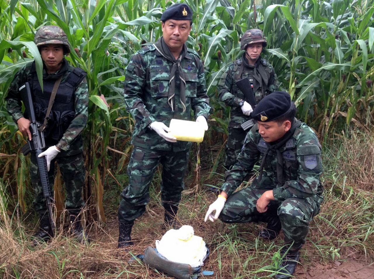 ทั้งนี้ ทหารวิ่งไล่ติดตามแต่ไม่สามารถจับกุมได้ จึงได้มาตรวจจุดที่คนขี่ทิ้งกระเป๋าลงไปในดงต้นข้าวโพดก็พบกระเป๋าตกอยู่ จากการตรวจสอบภายในกระเป๋าเป้พบยาบ้าประมาณ 40,000 เม็ด จึงได้นำของกลางตรวจยึดไว้พร้อมทั้งวิทยุสกัดจับเส้นทางหลบหนี จากนั้นได้นำของกลางส่งมอบให้ เจ้าหน้าที่ตำรวจ สภ.นาหวาย อ.เชียงดาว ดำเนินการต่อไป