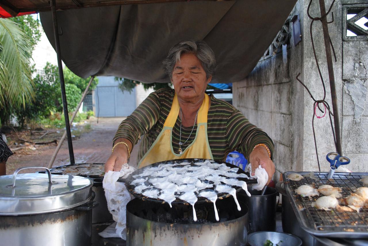 เมื่อวันที่ 31 ก.ค. 59 ผู้สื่อข่าวได้เดินทางไปยังบ้านเลขที่ 16/5 ถนนเทศบาลดำริ 1 ต.เมืองสวรรคโลก เป็นบ้านของนางวนิดา เหมรา อายุ 67 ปี หรือที่ชาวบ้านเรียกกันว่า "ยายปาน ขนมครก" เมื่อไปถึงพบว่า ยายปานและหลานๆ กำลังช่วยกันหยอดขนมครกที่ตั้งรถเข็นมาขายอยู่ที่บริเวณหน้าบ้าน โดยมีลูกค้าขาประจำมายืนรอเพื่อซื้อขนมครก
