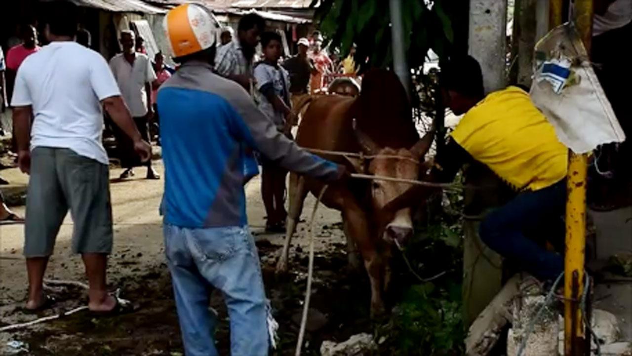 วัวหนุ่มเจ้าของอยู่ที่ชายแดนแม่สอด เหมือนรู้ตัวกำลังจะถูกส่งไปเชือด แหกหนีออกมาวิ่งเข้าไปในย่านชุมชนไล่ขวิดทุกอย่างที่ขวางหน้า มีคนได้รับบาดเจ็บ 1 คน กว่าจะจับได้เล่นเอาเหนื่อย เผยชาวเมียนมา ชอบนำวัวมาเดินโชว์ริมถนน...