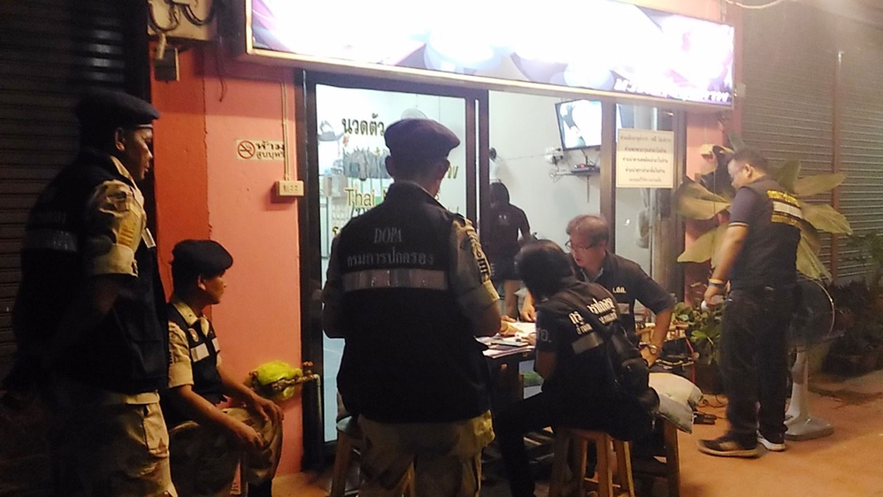 จากการตรวจสอบพบว่า การเปิดสถานบริการ นวดแผนไทย ได้ผิดกับระเบียบที่วางไว้คือ พนักงานไม่มีชุดแบบฟอร์มใส่ ไม่มีป้ายชื่อติดหน้าอก และชั้นบนให้เป็นที่พักอาศัยของพนักงาน ซึ่งผิดกับระเบียบ เจ้าพนักงานได้ให้สายลับปลอมตัวเป็นนักเที่ยวเข้าทำการสืบสวนการประกอบกิจการของร้านนวดบริเวณใกล้เคียงโรงแรมฟ้าธานิน, โค้งอีซูซุ และบนถนนมหาวงศ์-อนันตวรฤทธิเดช จำนวน 4 แห่ง