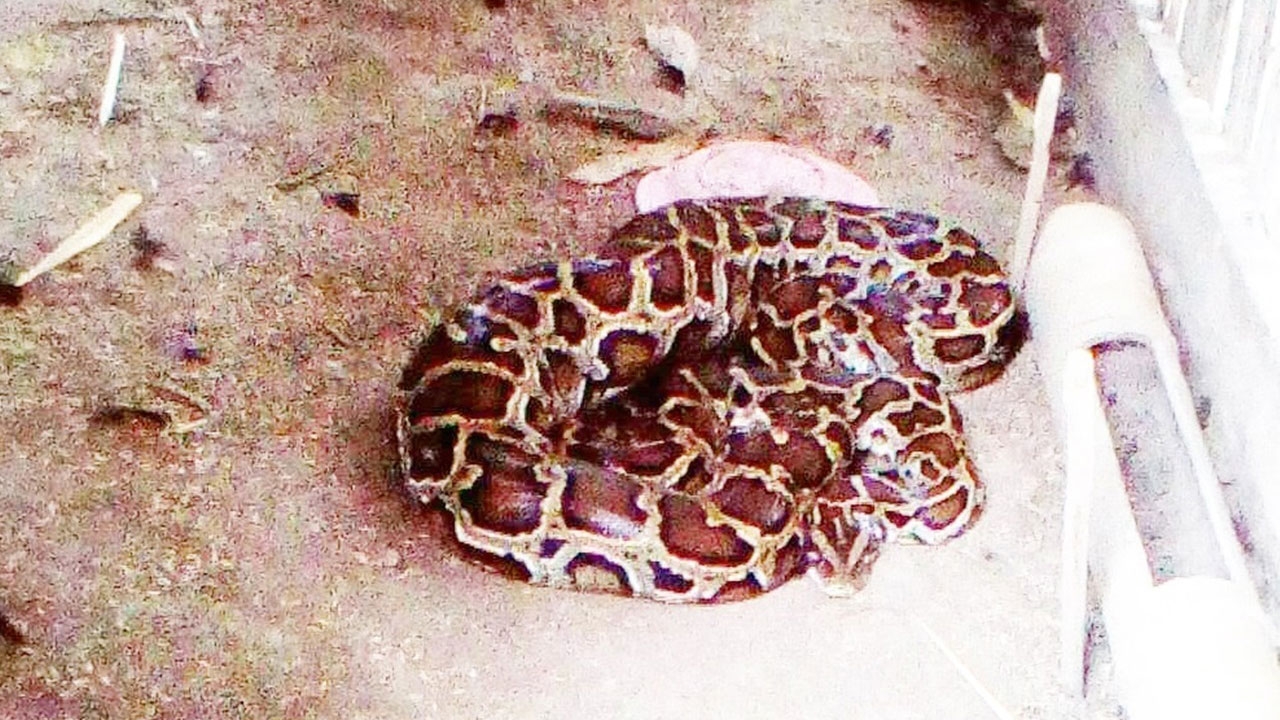 สอบถามนางสมพร ทราบว่า ช่วงกลางดึกที่ผ่านมาได้ยินไก่ที่เลี้ยงไว้ส่งเสียงร้องผิดปกติ จนกระทั่งรุ่งเช้าเมื่อลงไปดูก็พบว่ามีงูหลามเข้าไปนอนพุงกางอยู่ในเล้า และแม่ไก่พันธุ์พื้นเมืองหนักเกือบ 3 กก.หายไป 1 ตัว คาดว่าน่าจะลงไปอยู่ในท้องของงูหลามยักษ์เรียบร้อยแล้ว หลังจากนั้นเจ้าหน้าที่ฯ ได้นำงูไปปล่อยคืนสู่ธรรมชาติต่อไป.