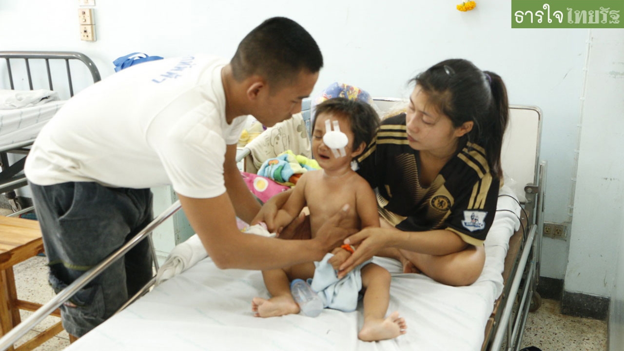 น่าสงสาร!! "น้องแป้ง" เด็กวัยขวบครึ่ง ถูกใบมีดเครื่องตัดข้าวดีดหลุดกระเด็นใส่ตาซ้ายแตก หมอต้องควักลูกตาทิ้งแล้วใส่ลูกแก้ว รอโอกาสใส่ตาเทียม หวั่นตาอีกข้างจะเสียตามไปด้วย พ่อก็เป็นทหารเกณฑ์ ส่วนแม่รับจ้าง หมดปัญญาพาลูกไปหาหมอที่กรุงเทพฯ วอนผู้ใจบุญช่วยเหลือ...